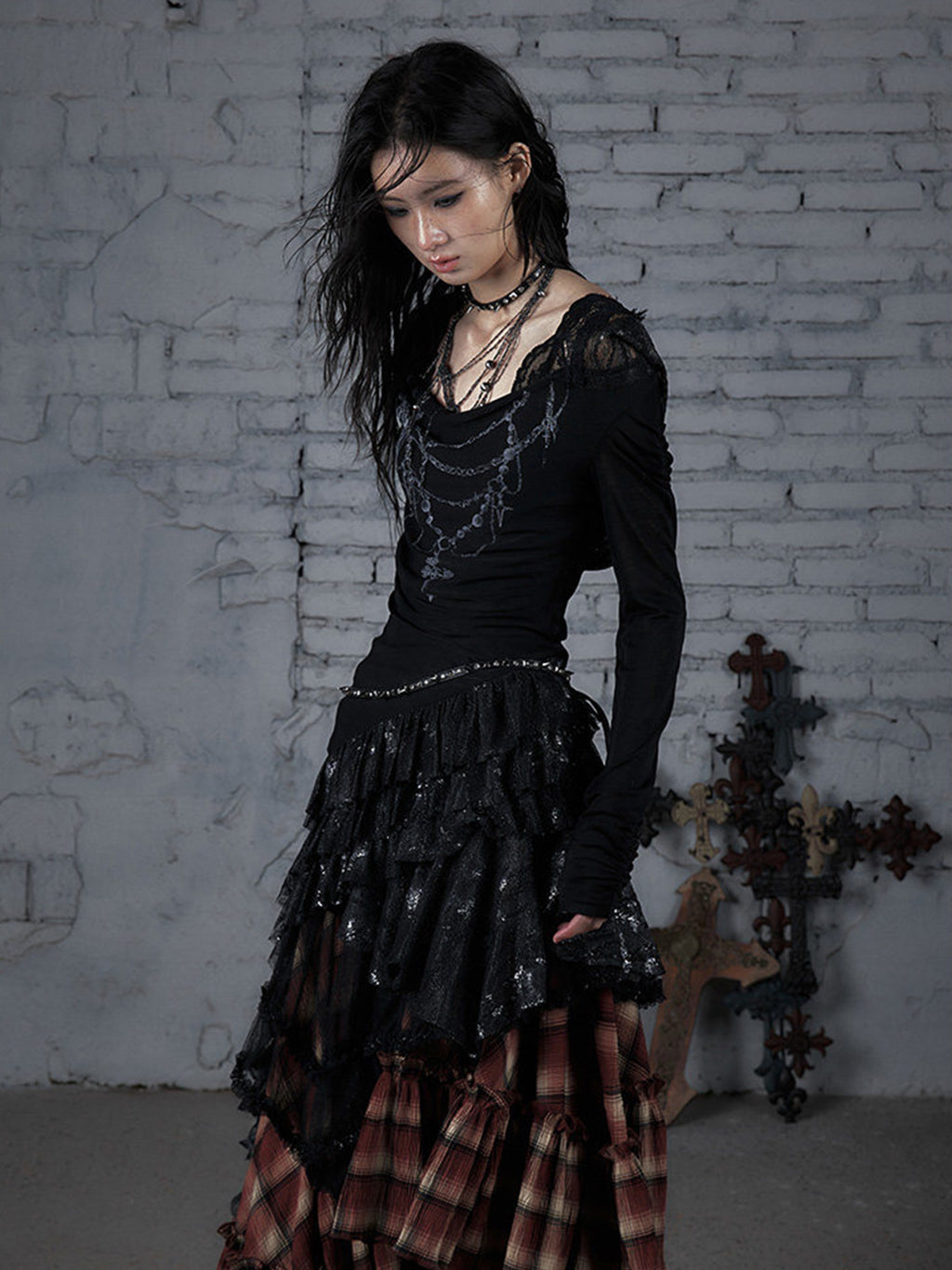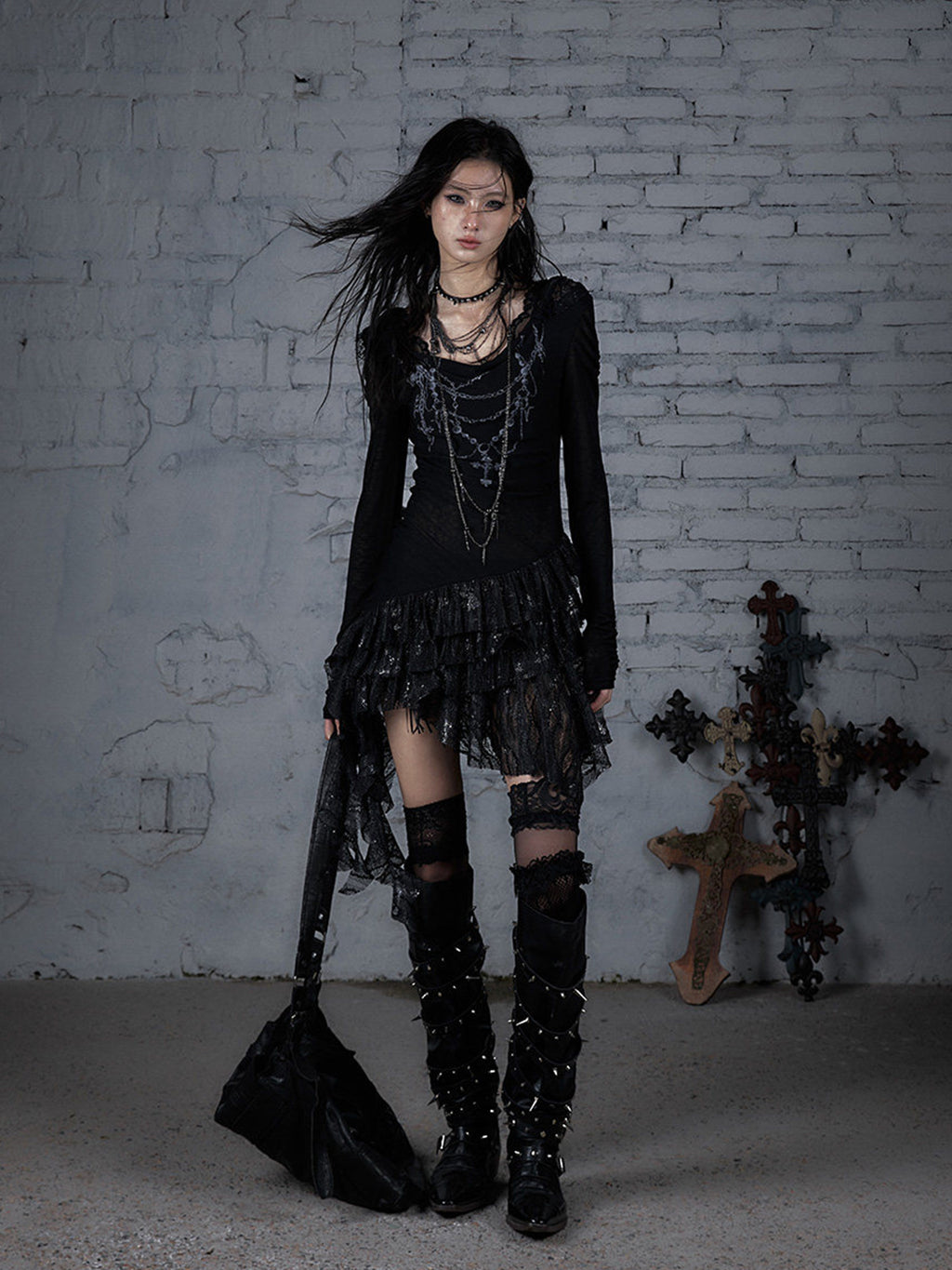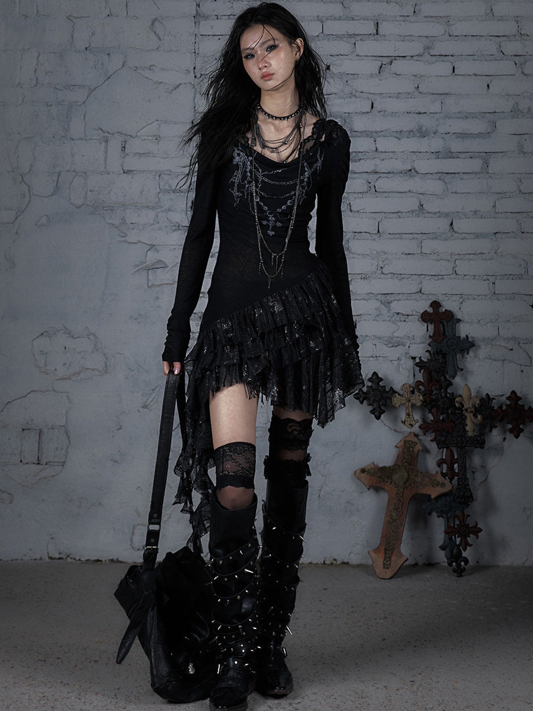 NO ROMANCE | Lace Knit Bottom Long Sleeve Hooded Dress