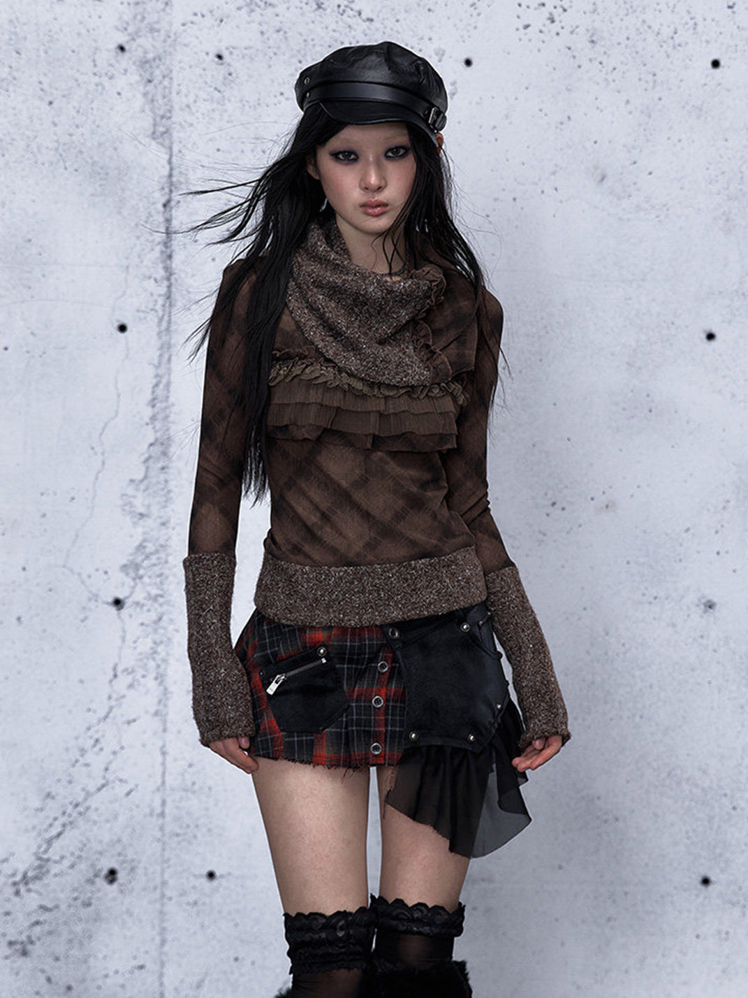 NO ROMANCE | Retro Detachable Scarf Round Neck Knit Sweater Skip to content