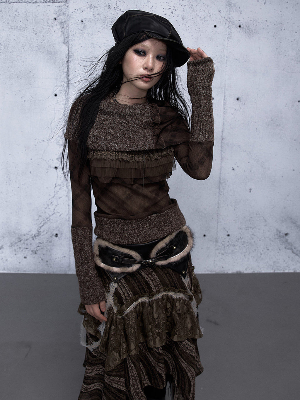NO ROMANCE | Retro Detachable Scarf Round Neck Knit Sweater