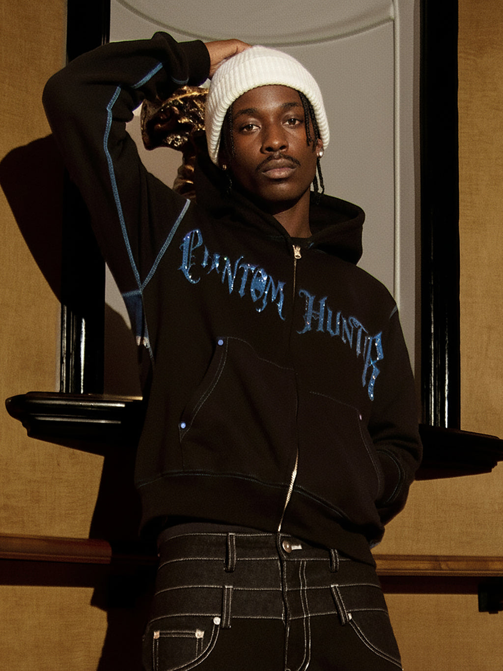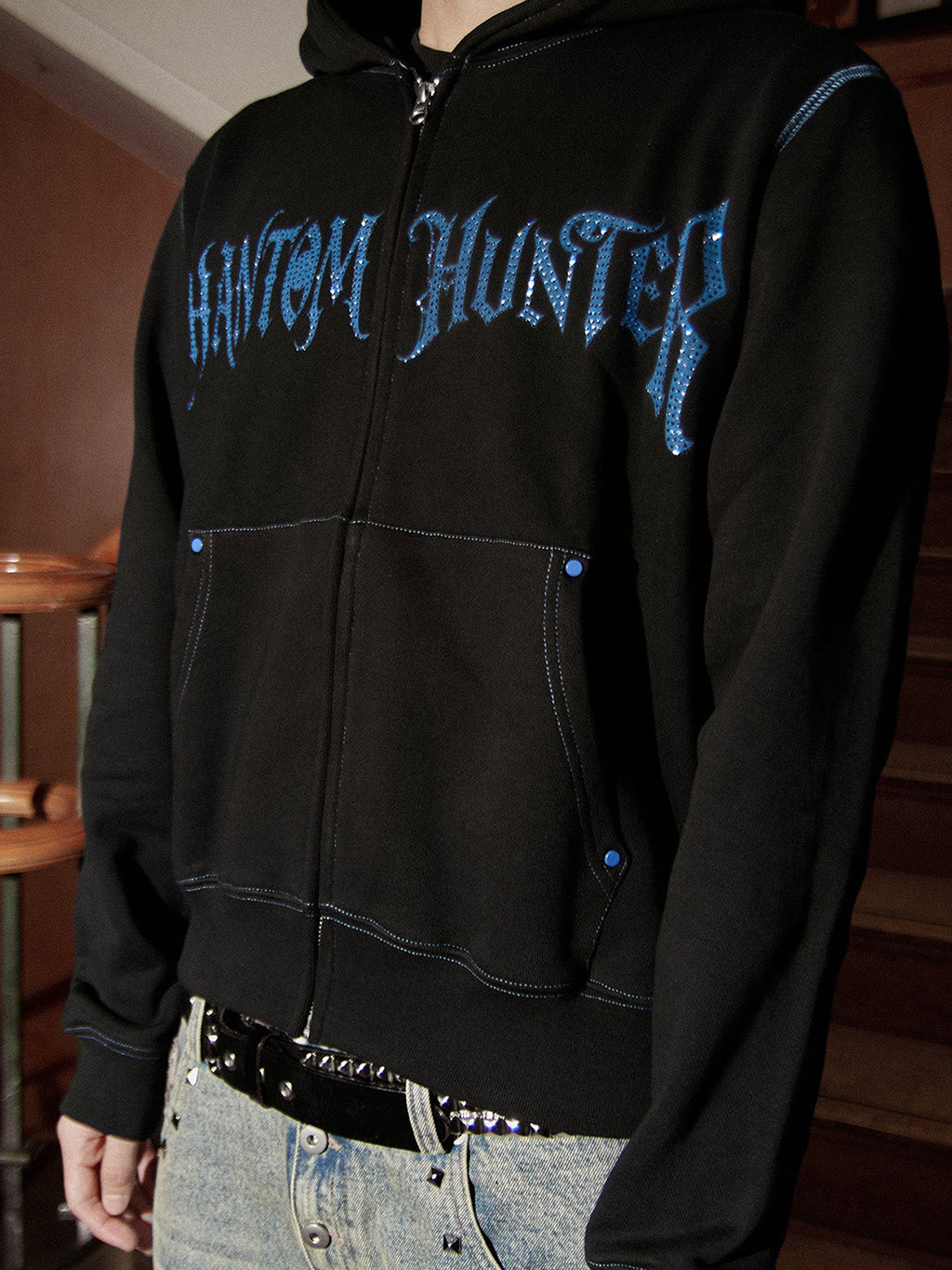 PHANTOMHUNTER | Rhinestone Print Zipper Hooded Jacket Skip to content