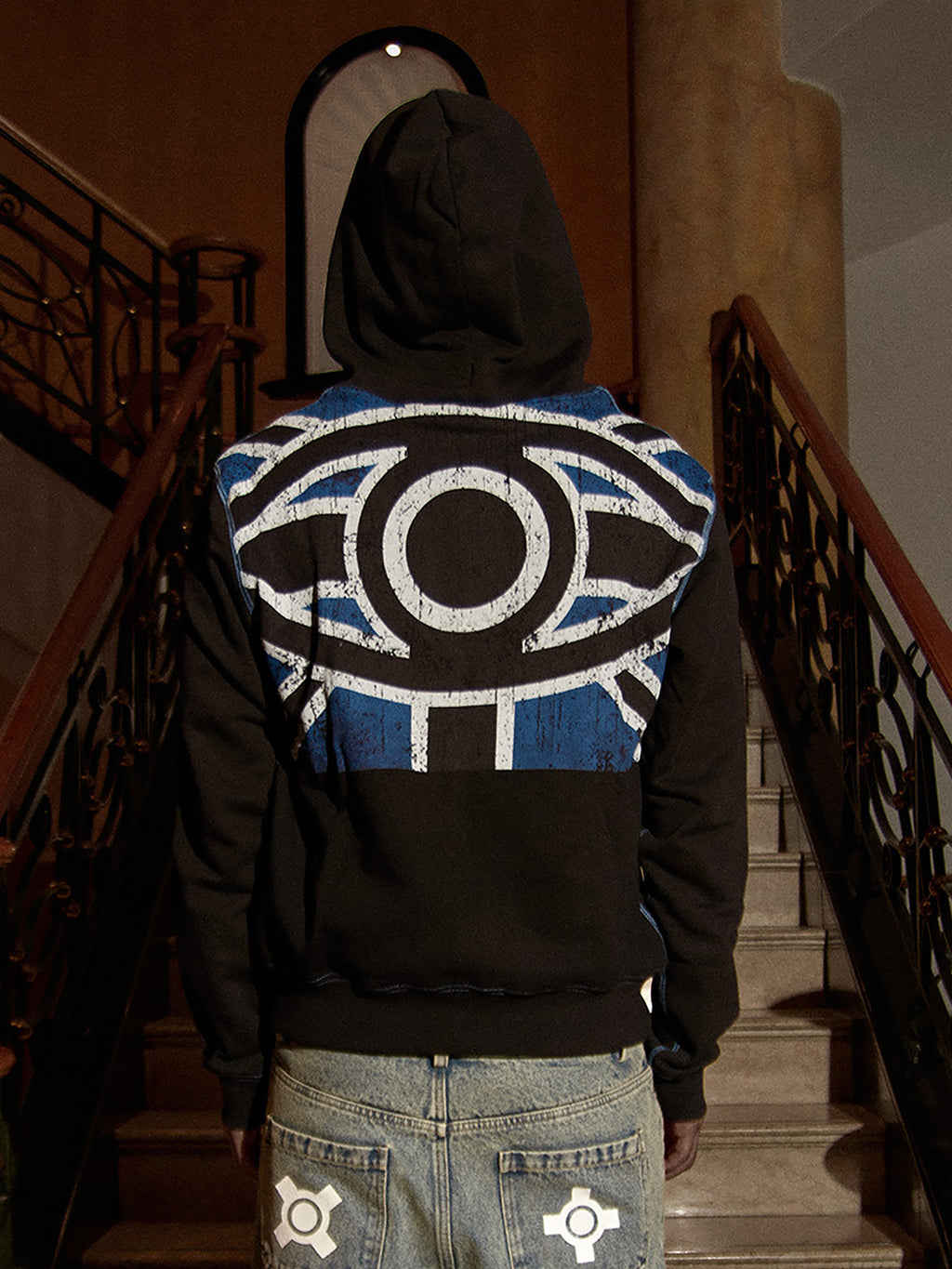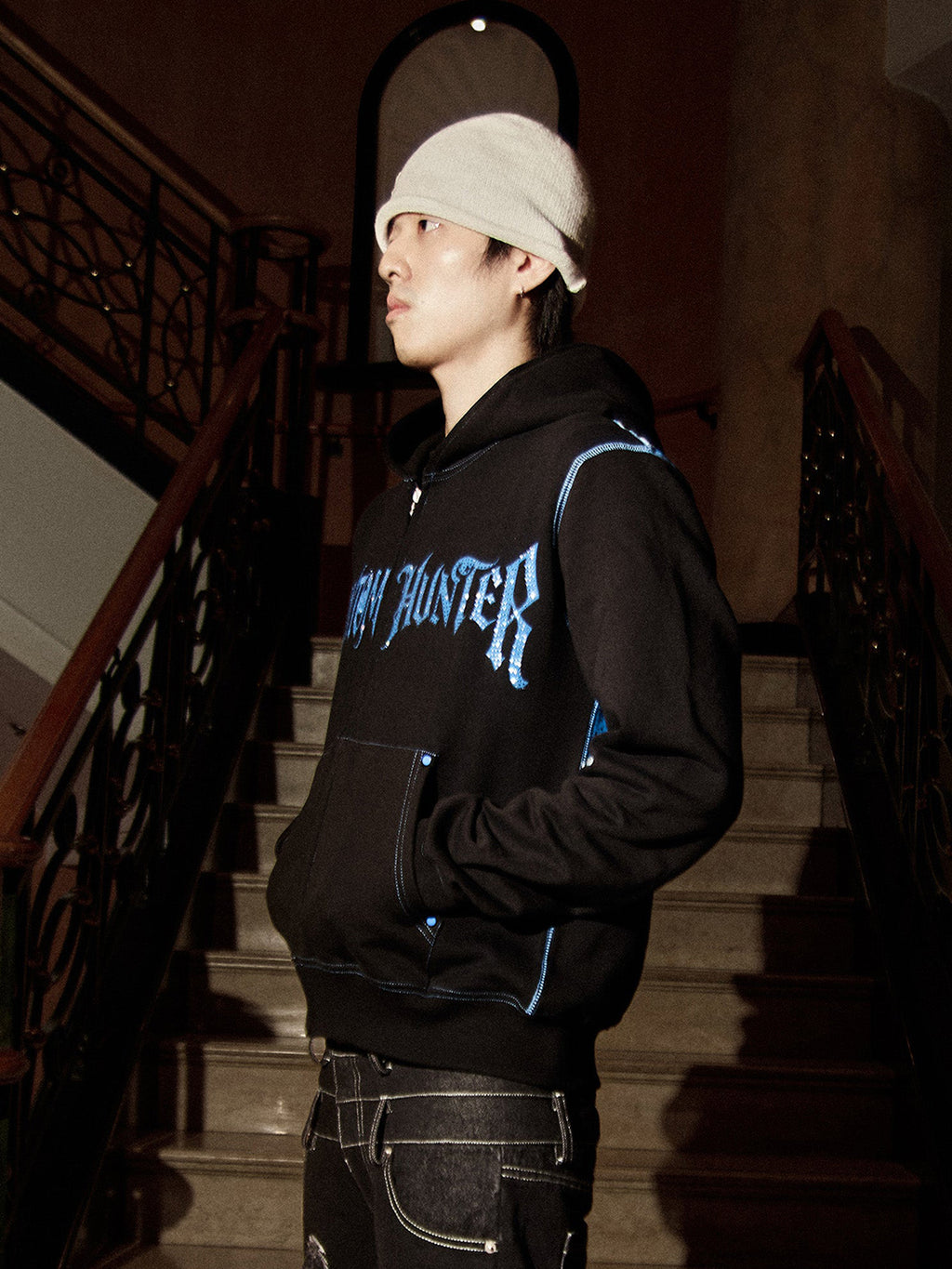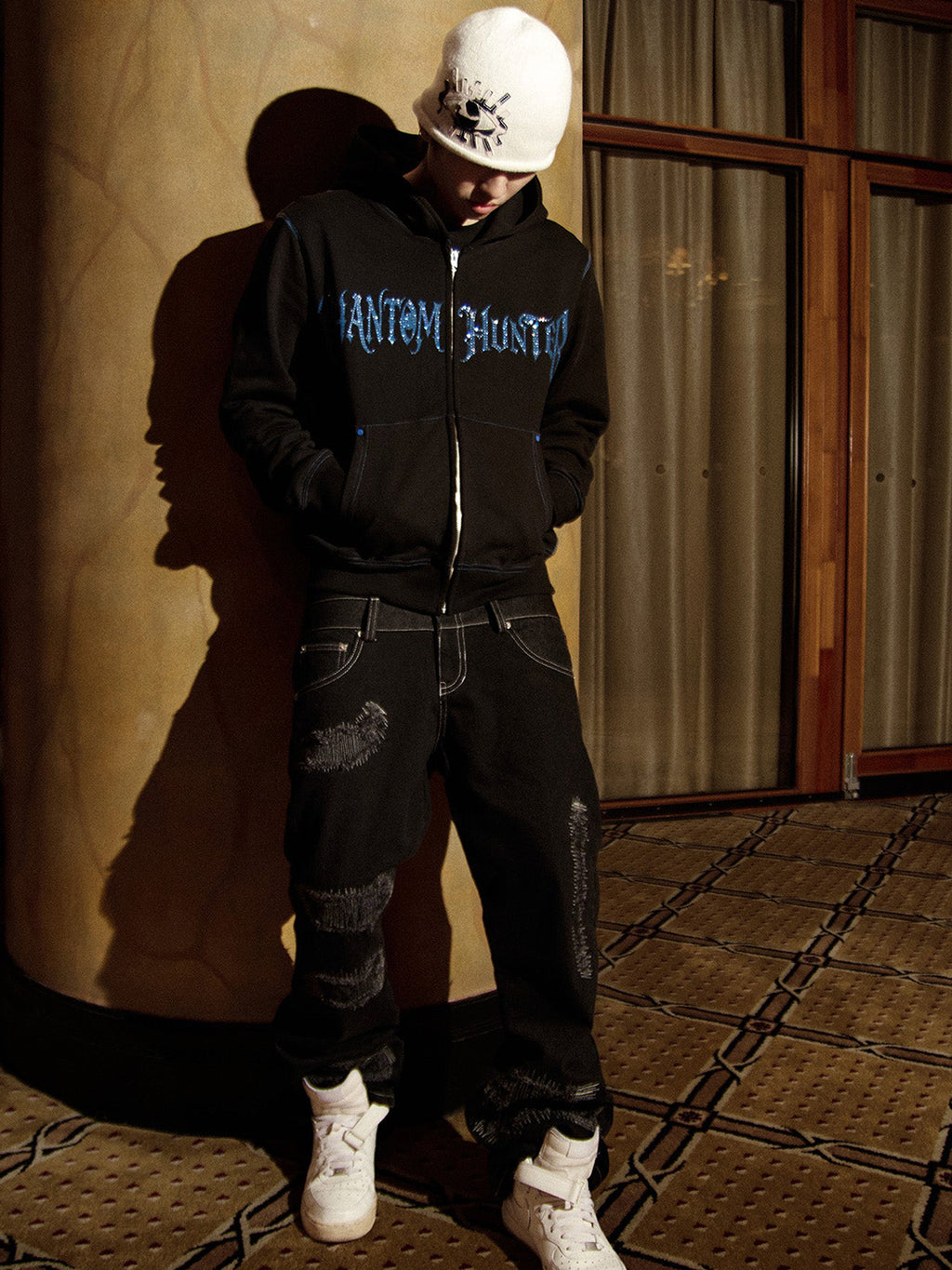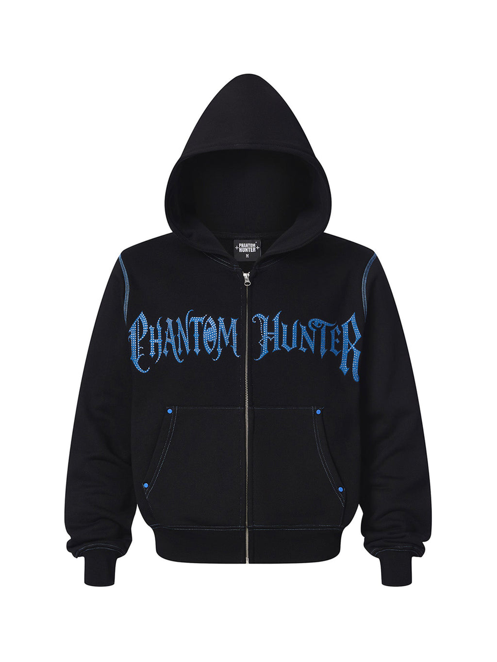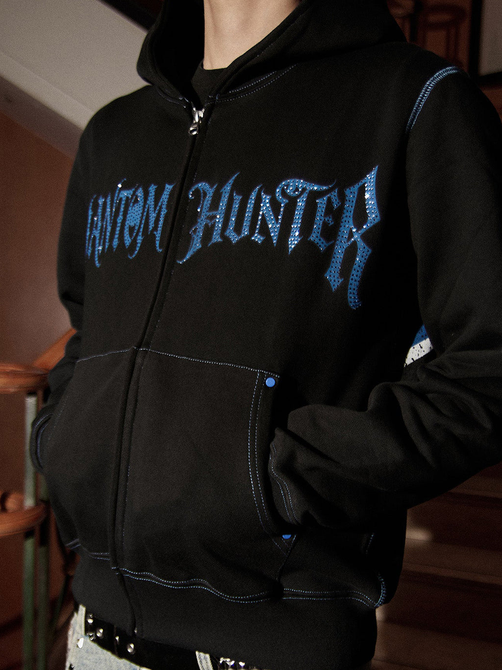 PHANTOMHUNTER | Rhinestone Print Zipper Hooded Jacket