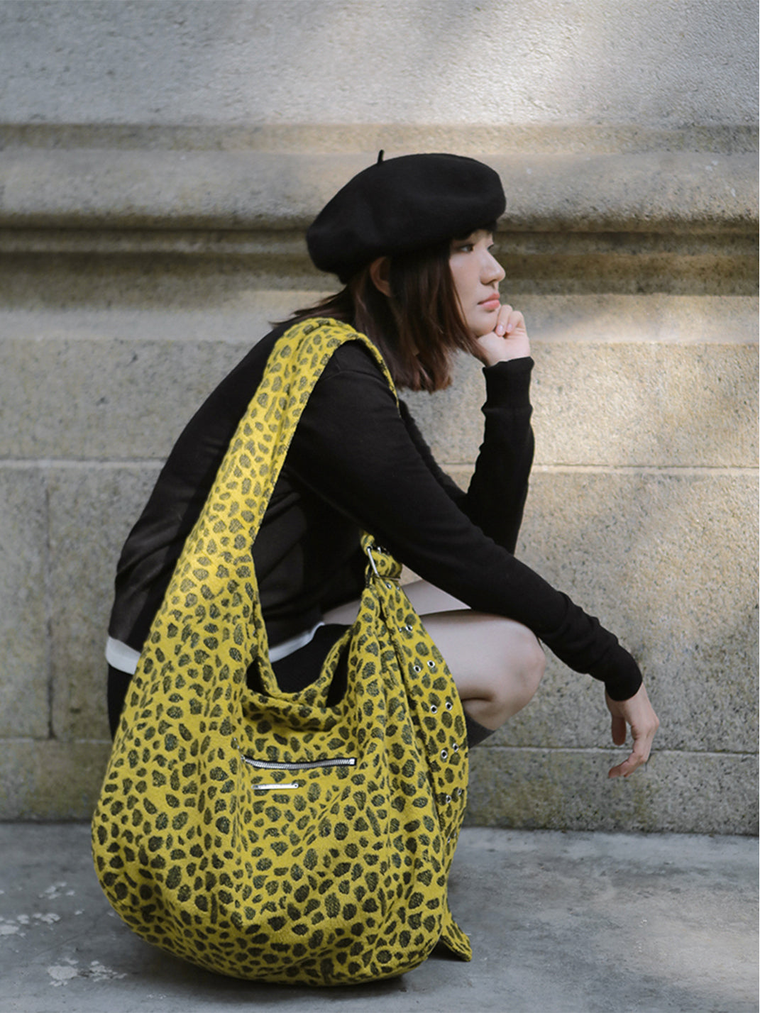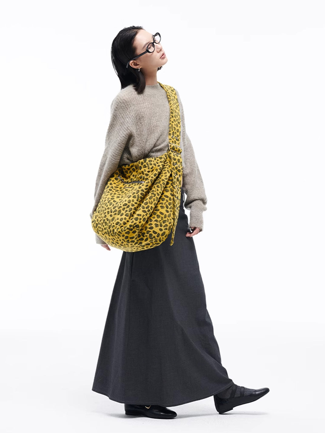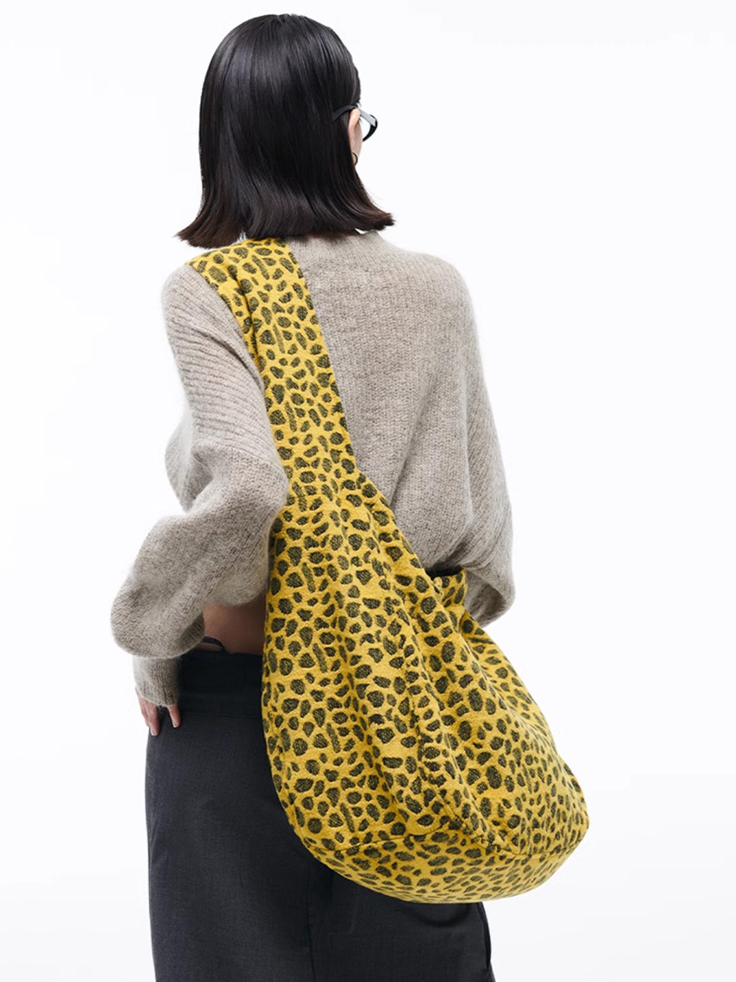 HIDDENNOTES | Yellow Leopard Shoulder Tote Bag