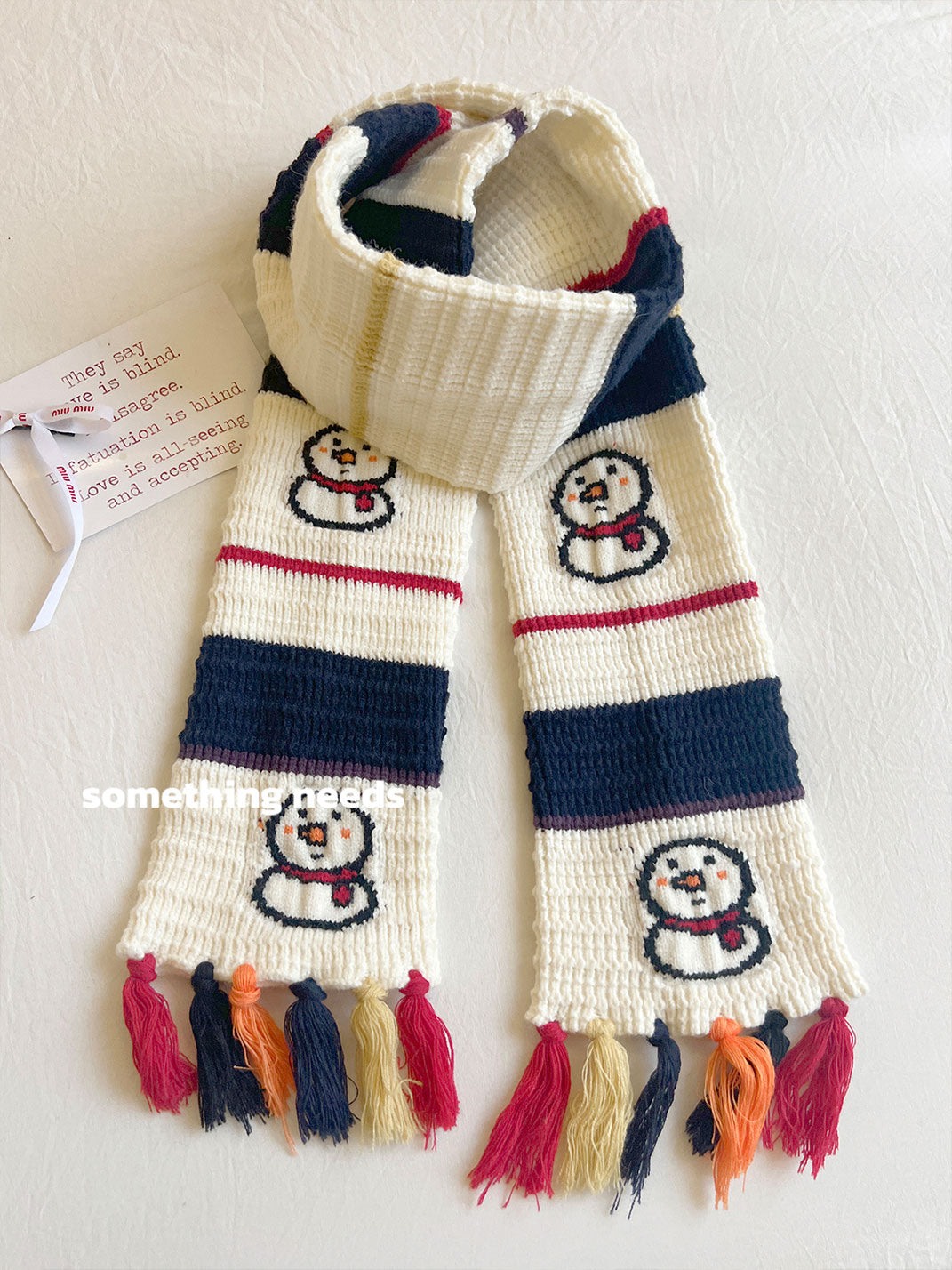 Something Needs | Festive Smiley Snowman Tassel Scarf Skip to content