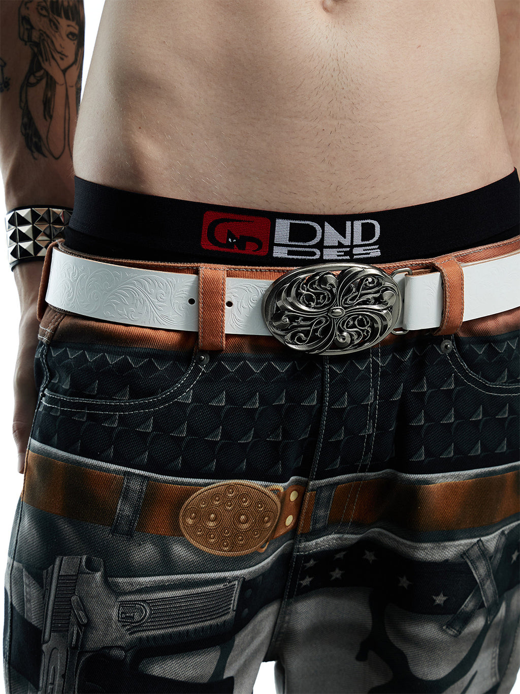 DND4DES | Embossed Cowhide Leather Belt-White Skip to content