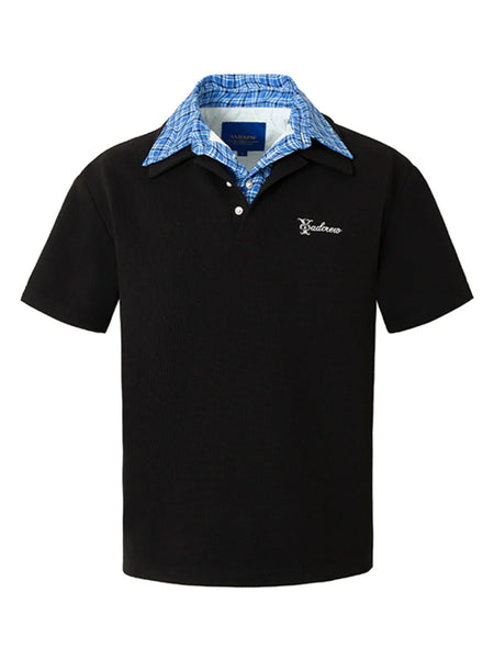 YADcrew丨YADcrew Double-Collar Distorted Polo-Black