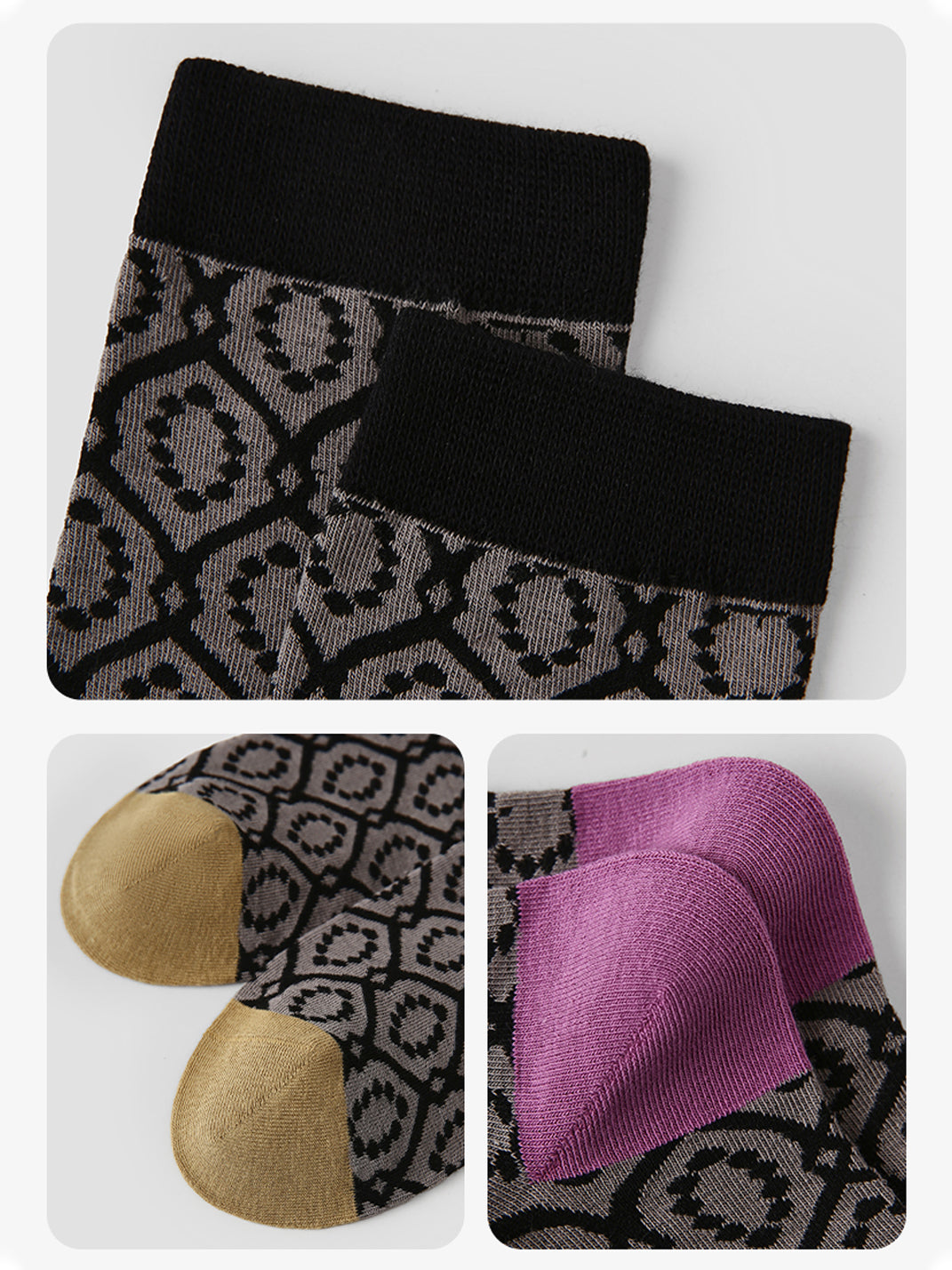Renaissance丨Plaid Floral Mid-Calf Socks (3 Packs)