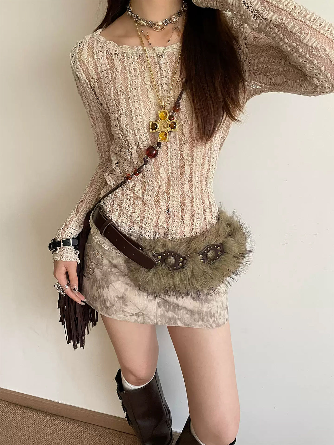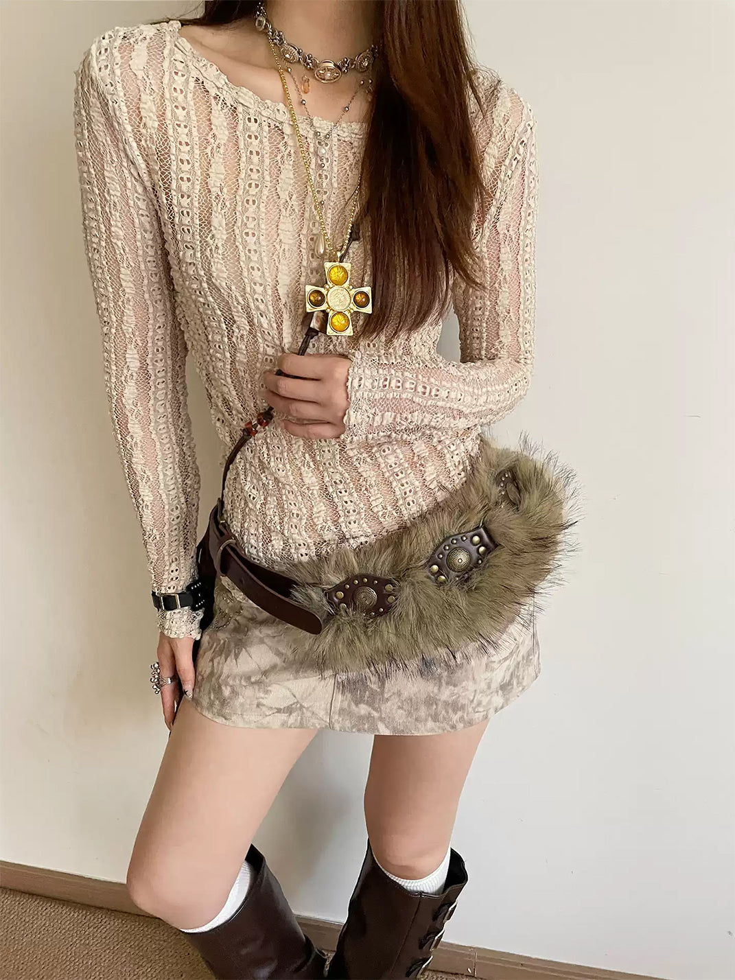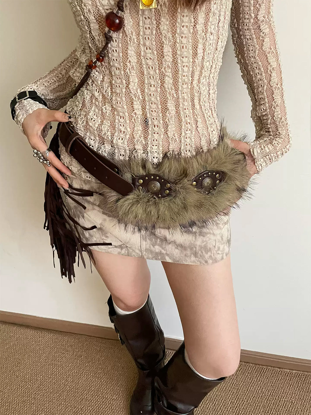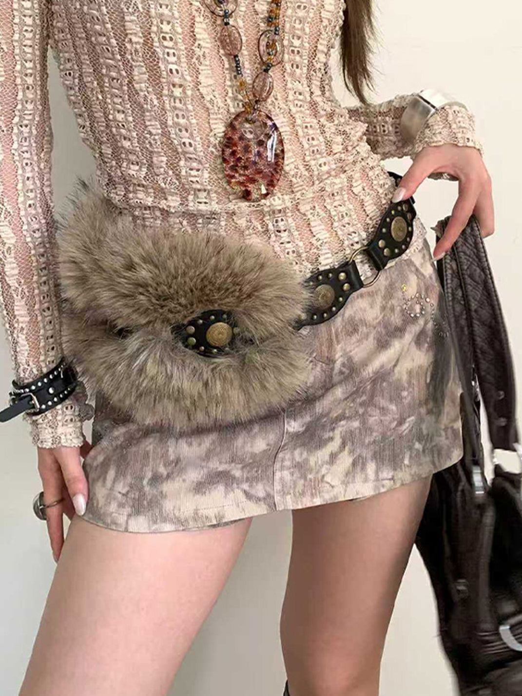 Unclecm | Y2K Punk Star Plush Spike Waist Belt