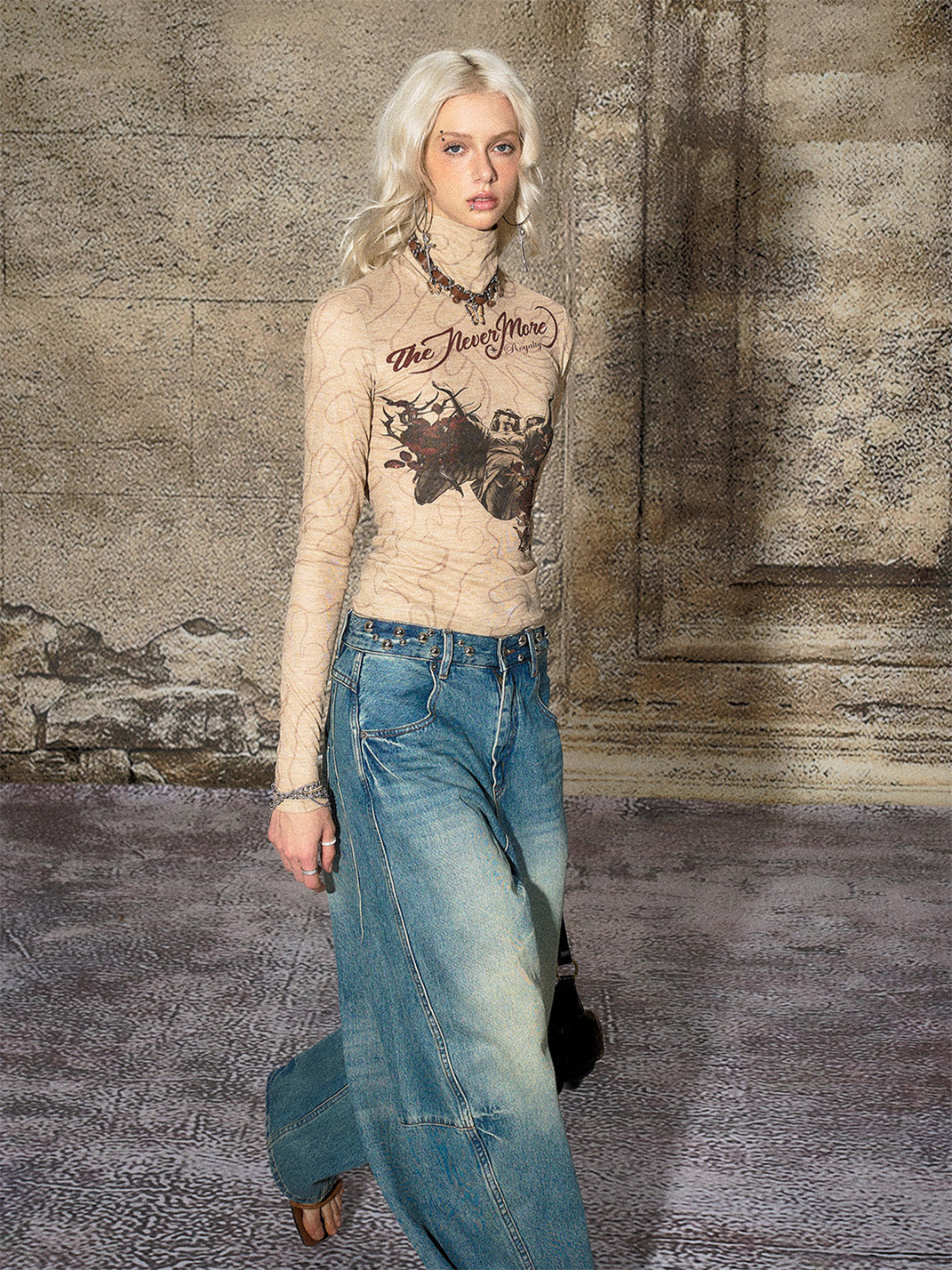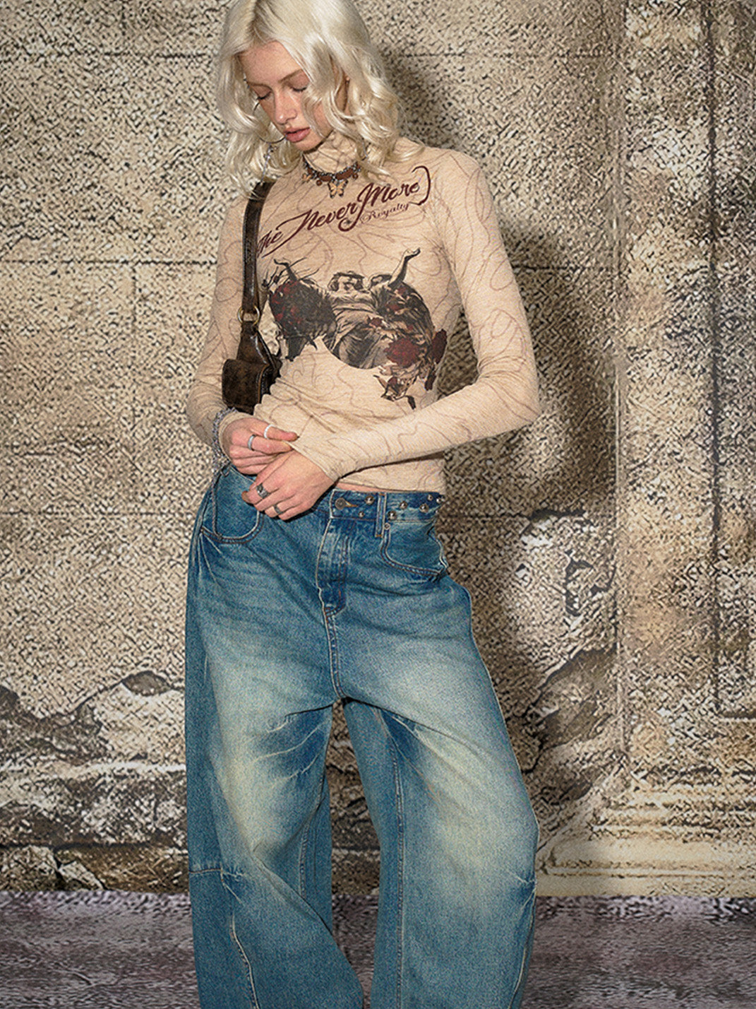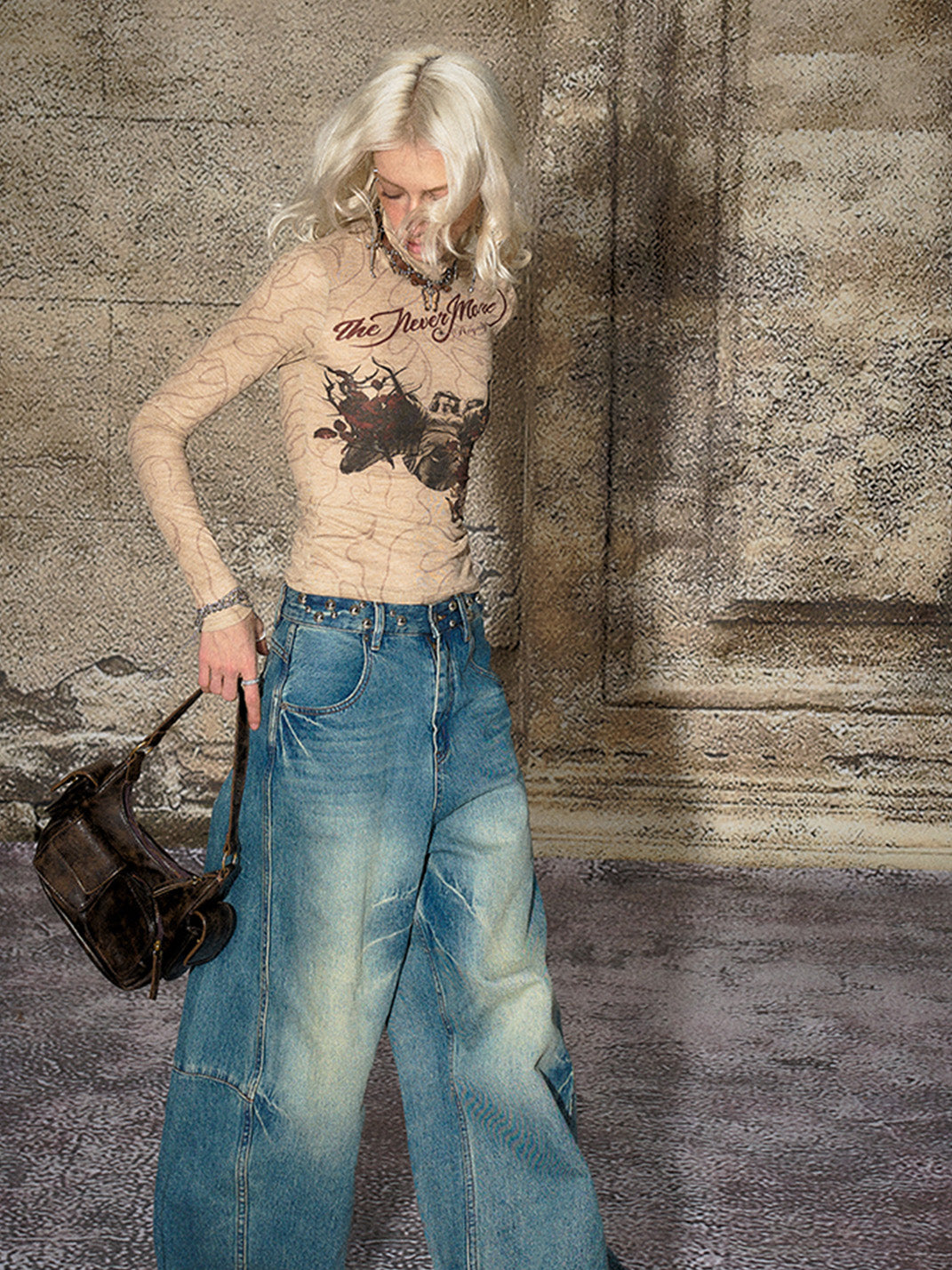 THE NEVERMORE | Blue Stitch-Wash Wide-Leg Denim Pants Skip to content