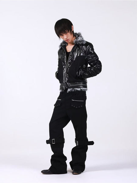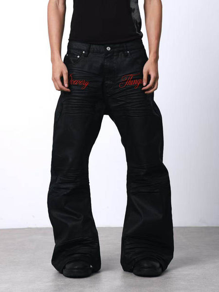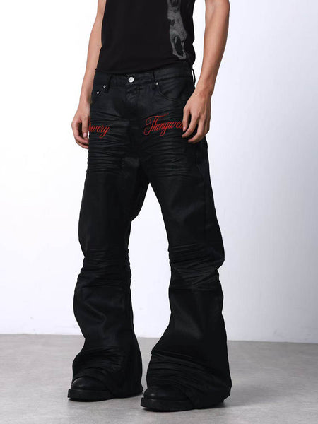 DETW | Waxed 3D Pleated Coated Flared Jeans