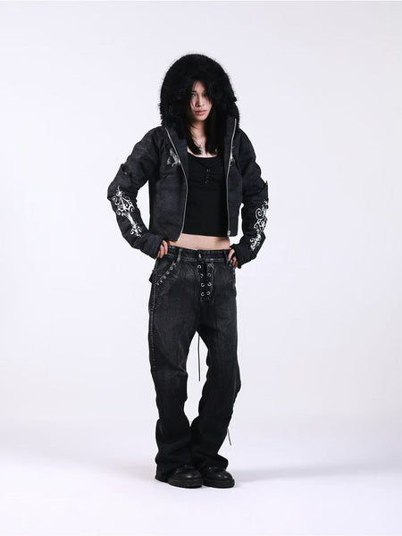 DETW | Denim Metal Zipper Lace-Up Jeans