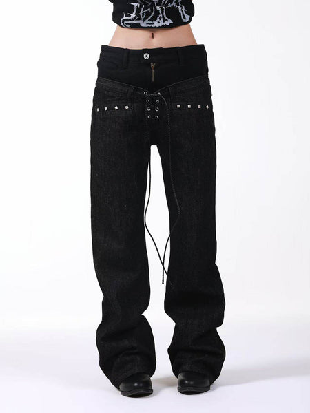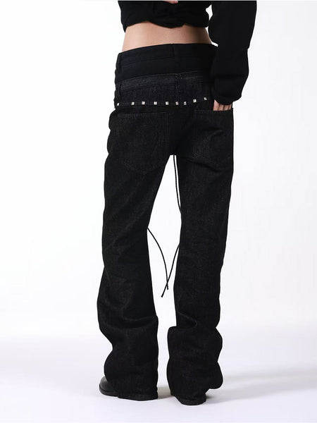 DETW | Studded Drawstring Double-Waist Jeans