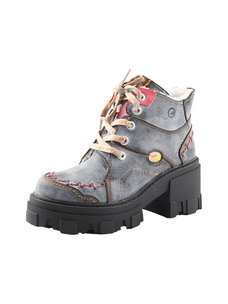 TMA EYES | Platform Chunky Lace-Up Booties with...