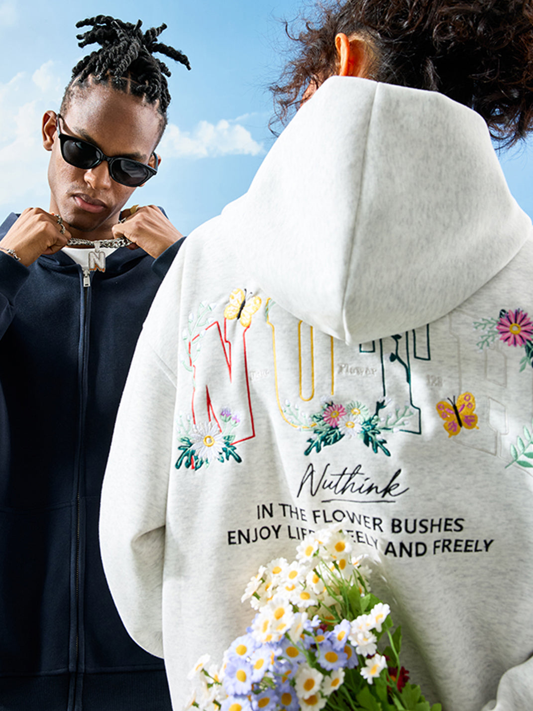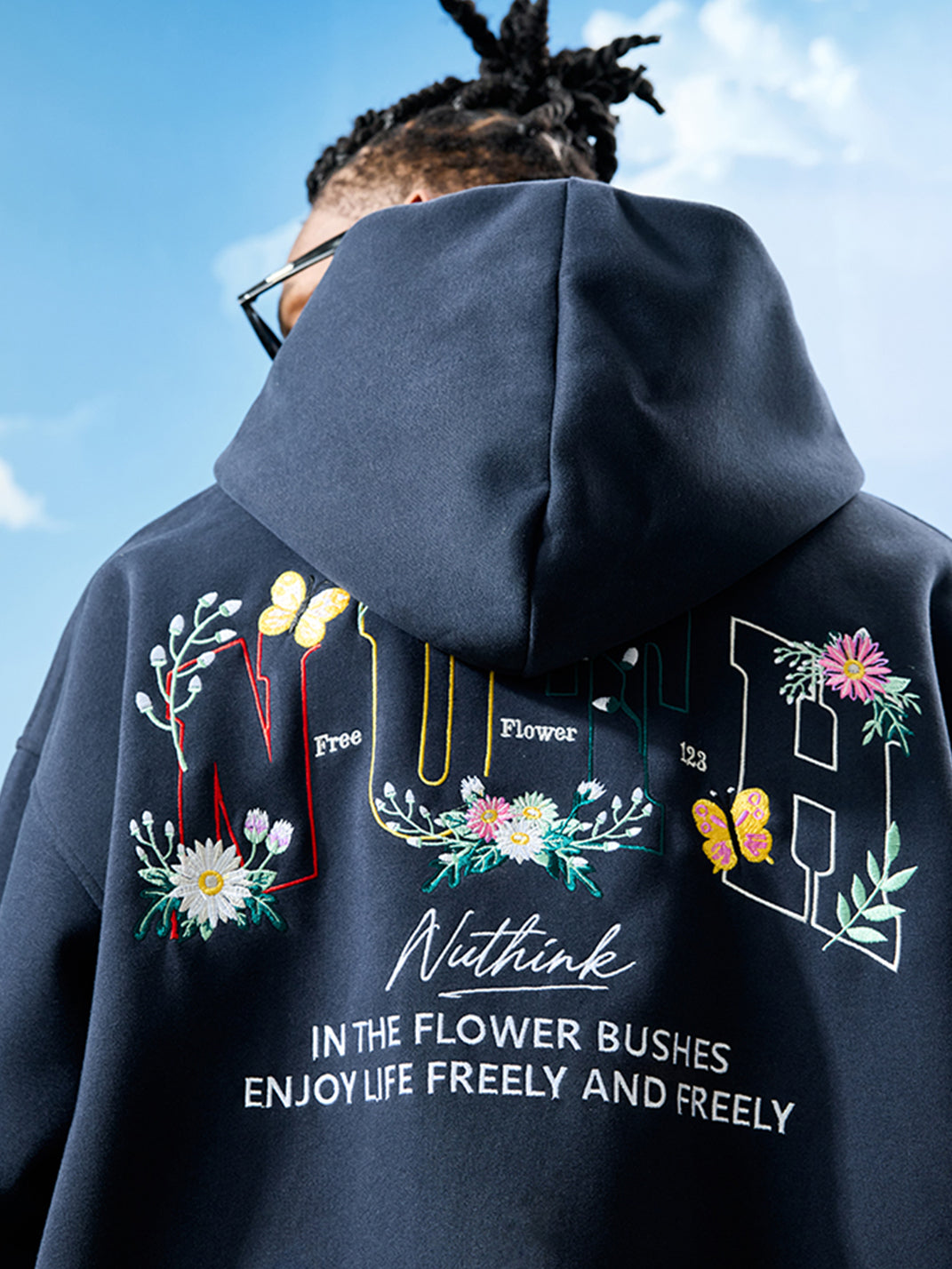 Nuthink | Floral Embroidery Hoodie Skip to content