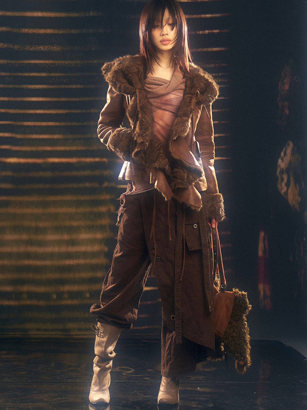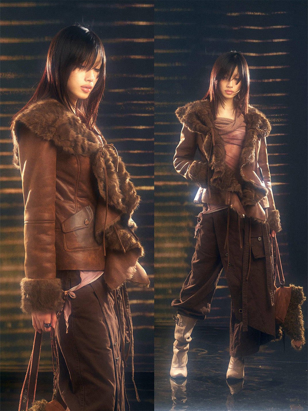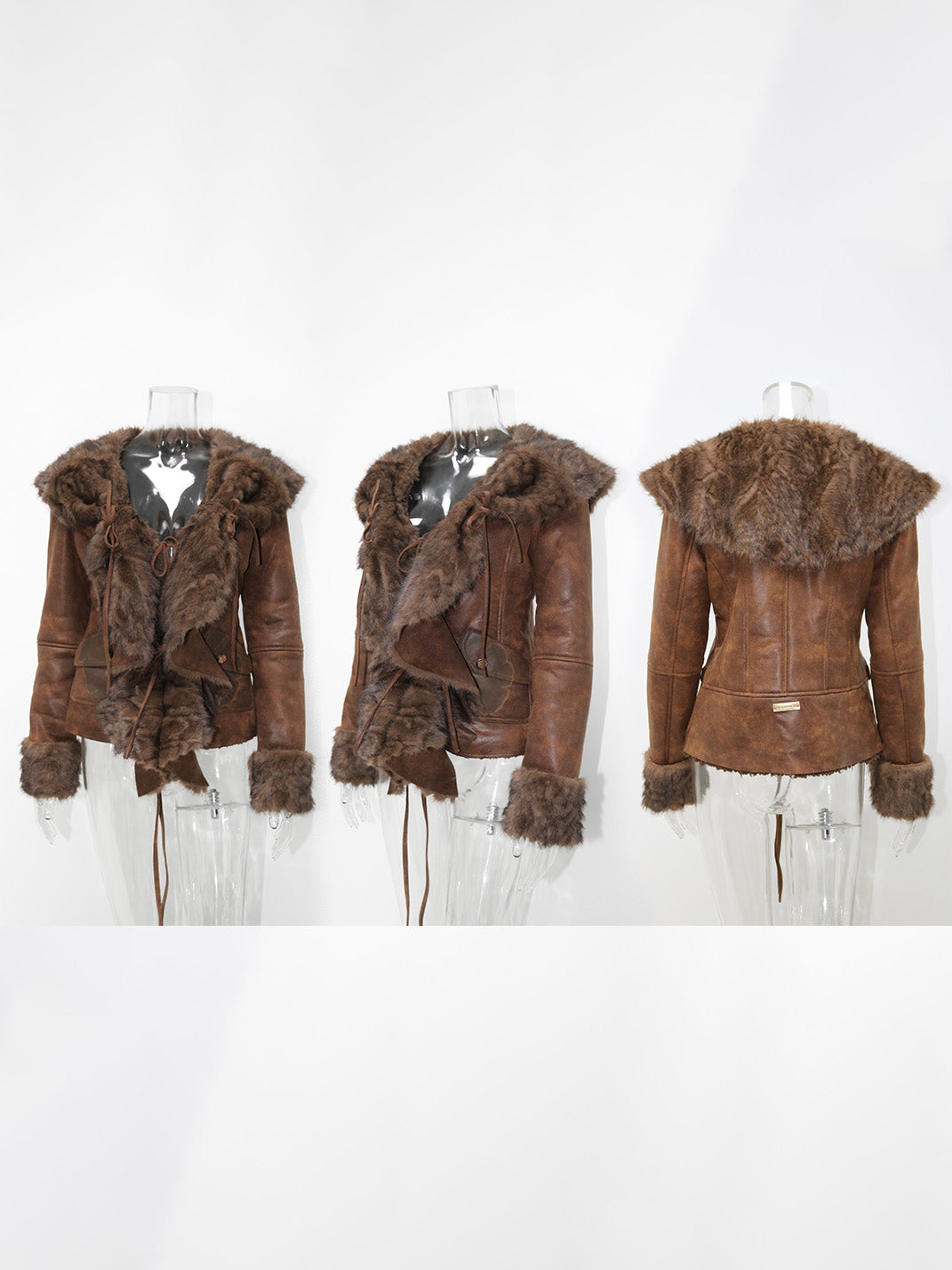 OPEN AESTHETIC丨Retro Faux Fur Ruffle Jacket