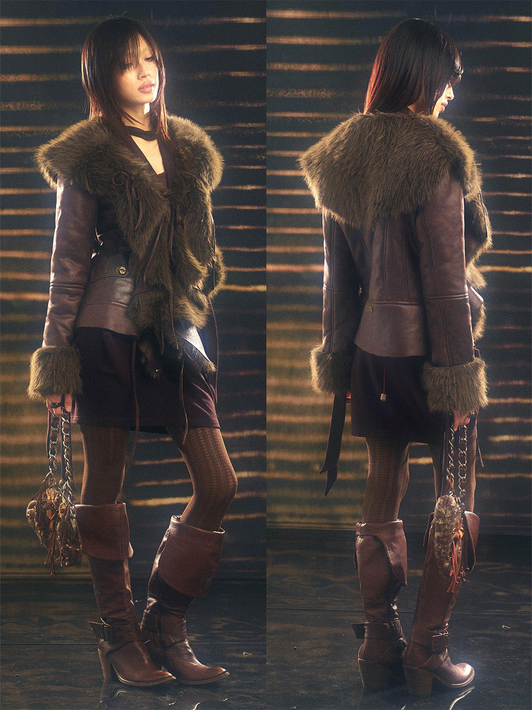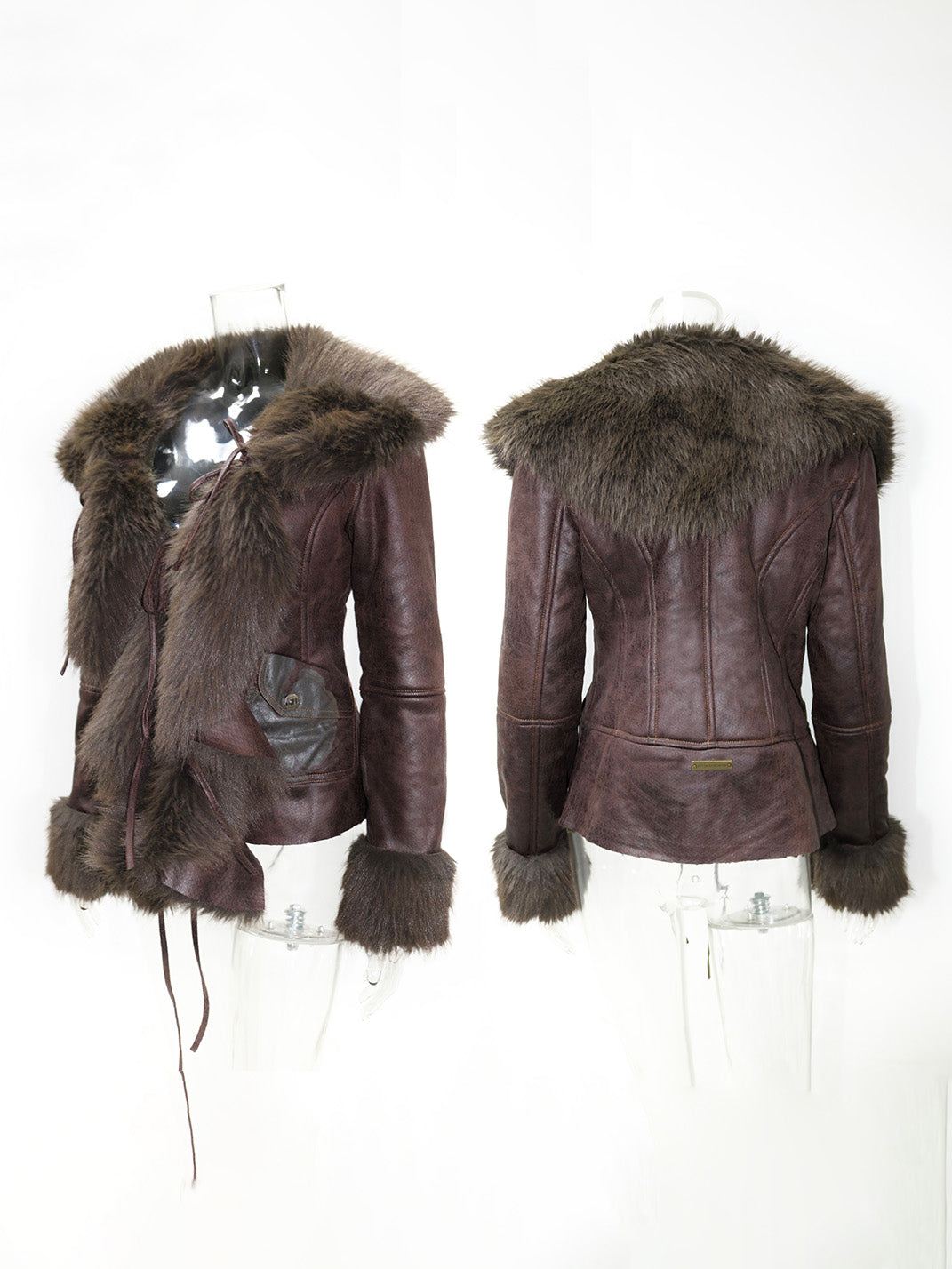 OPEN AESTHETIC丨Retro Faux Fur Ruffle Jacket Skip to content