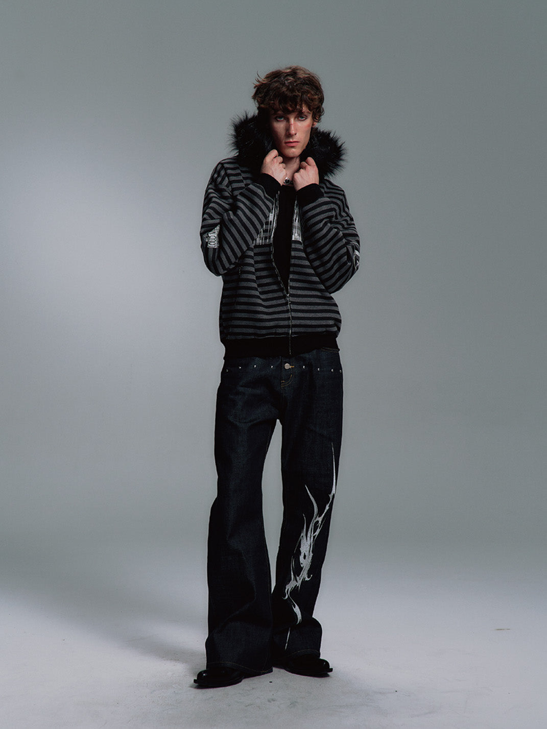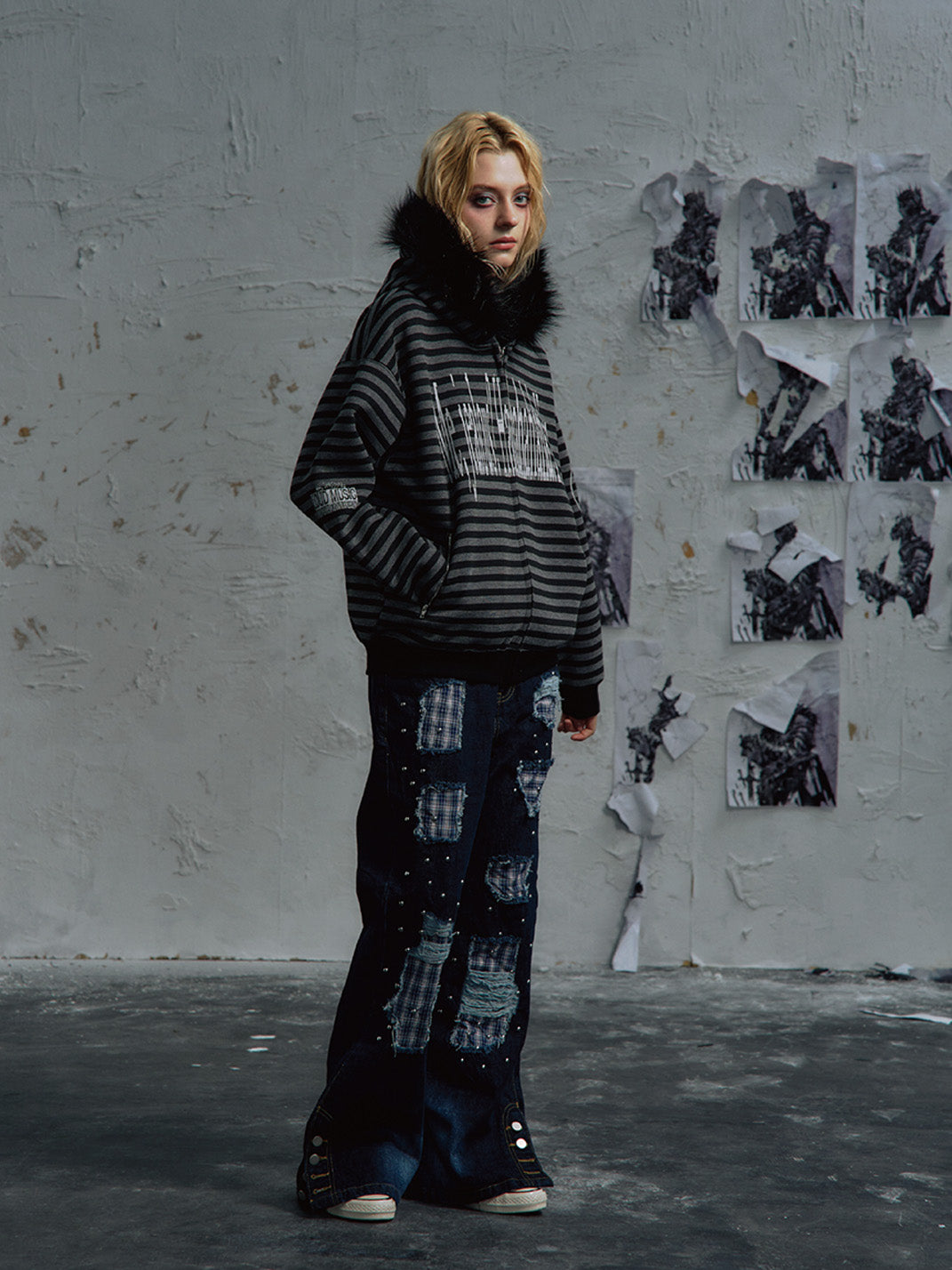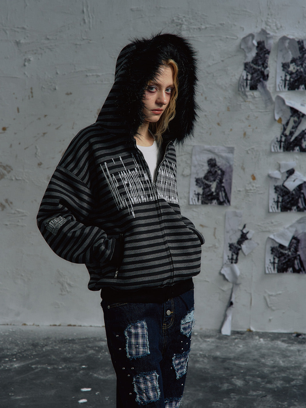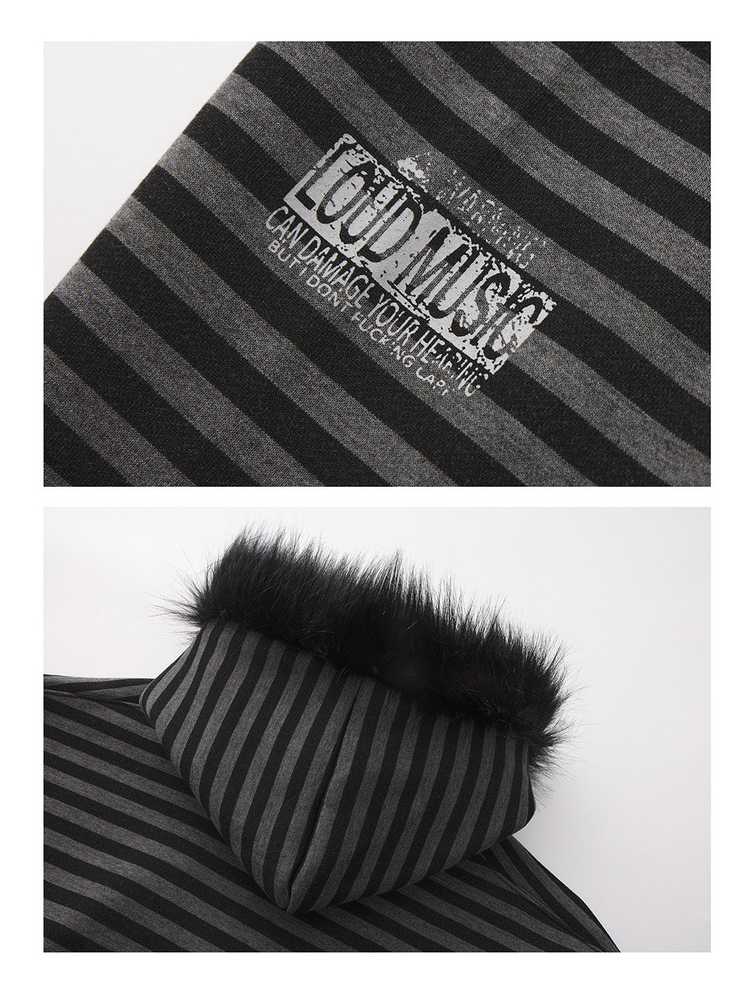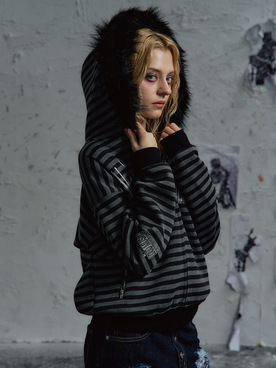 PAIKI | Faux Fur Collar Knit Hoodie Skip to content