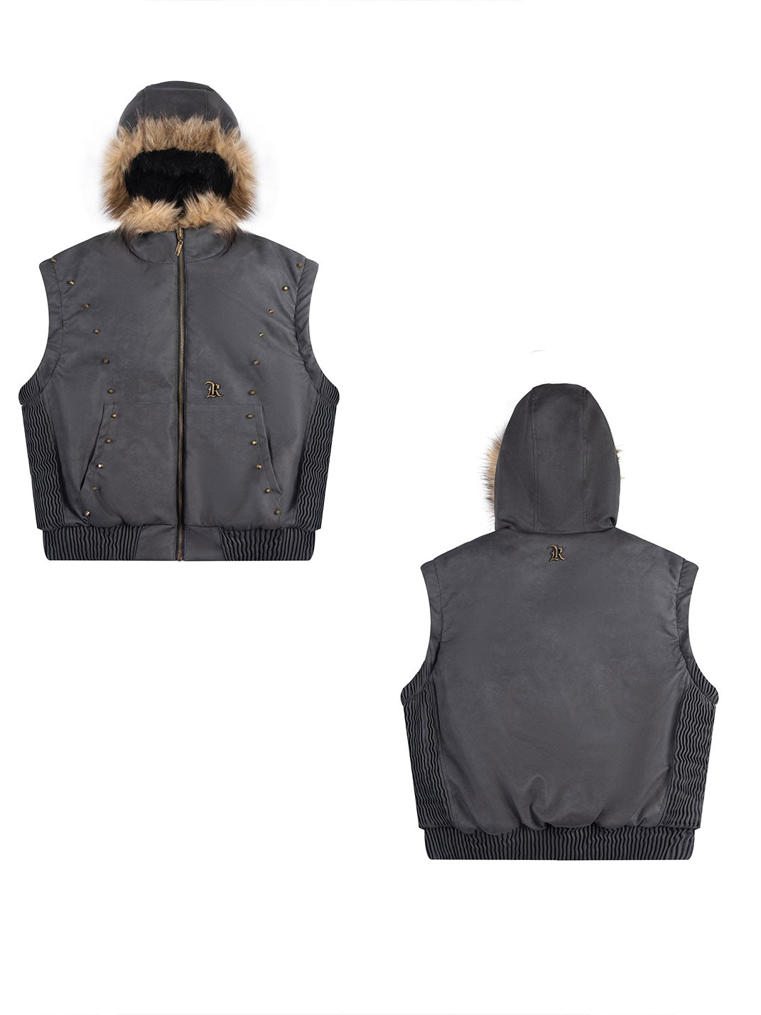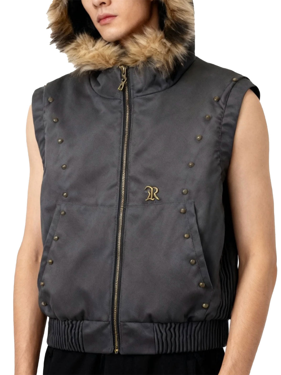 REGEN ZONE | Raven Studded Reversible Leather & Fur Moto Puffer
