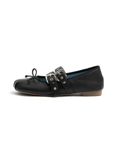 MILU | Double-Strap Genuine Leather Ballet Shoes