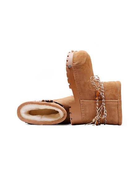 GIRLSHOME丨Vintage Faux Fur Lined Snow Boots