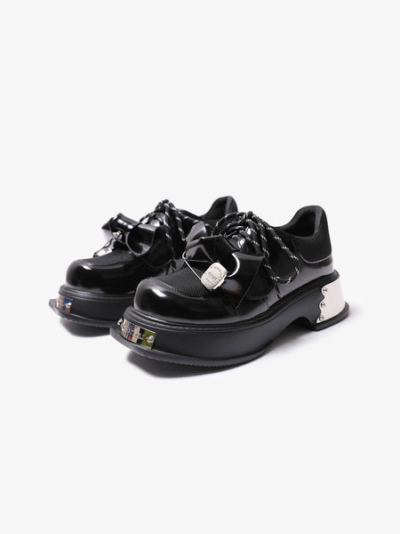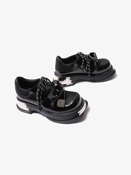 PINJIAHUI | Metal Detail Leather Platform Loafers