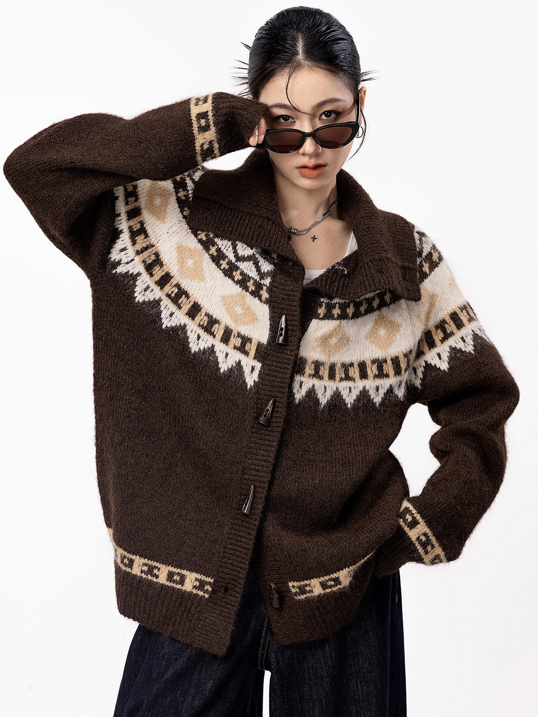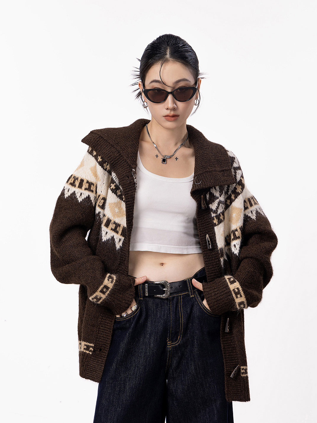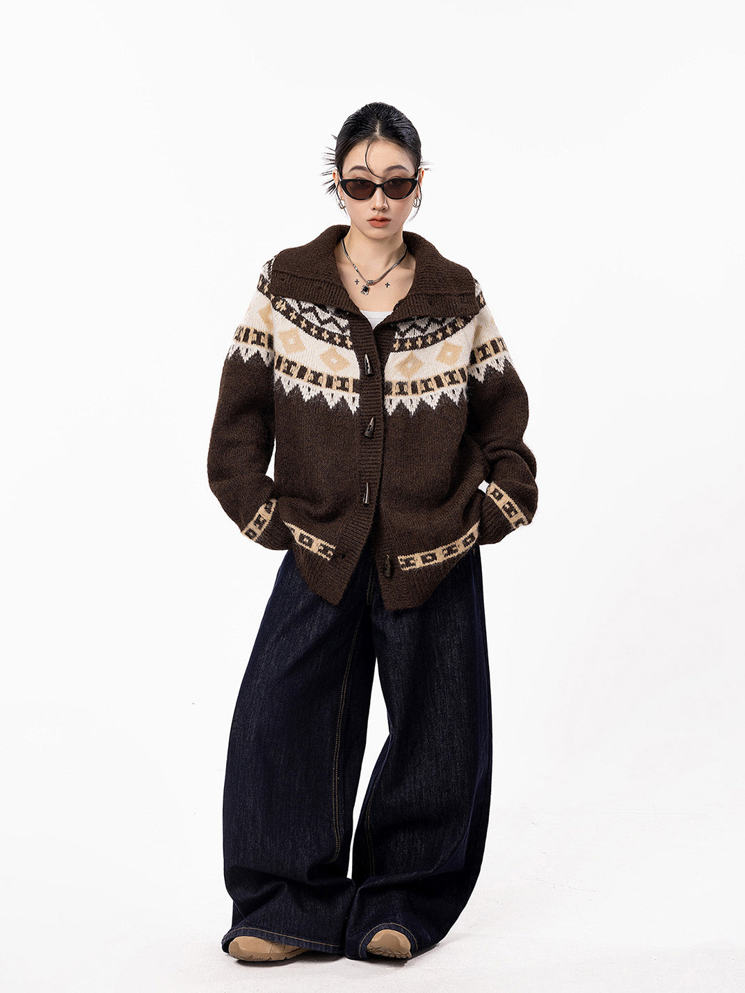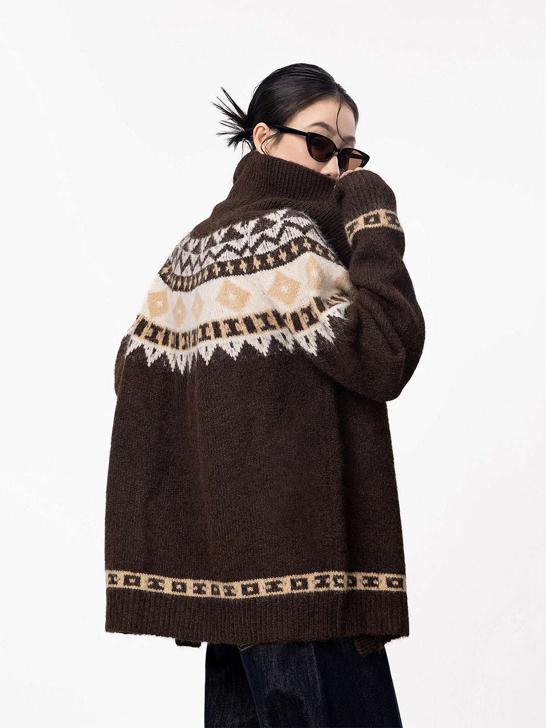ICH MODE | Fair Isle Wool Cardigan Turtleneck Sweater