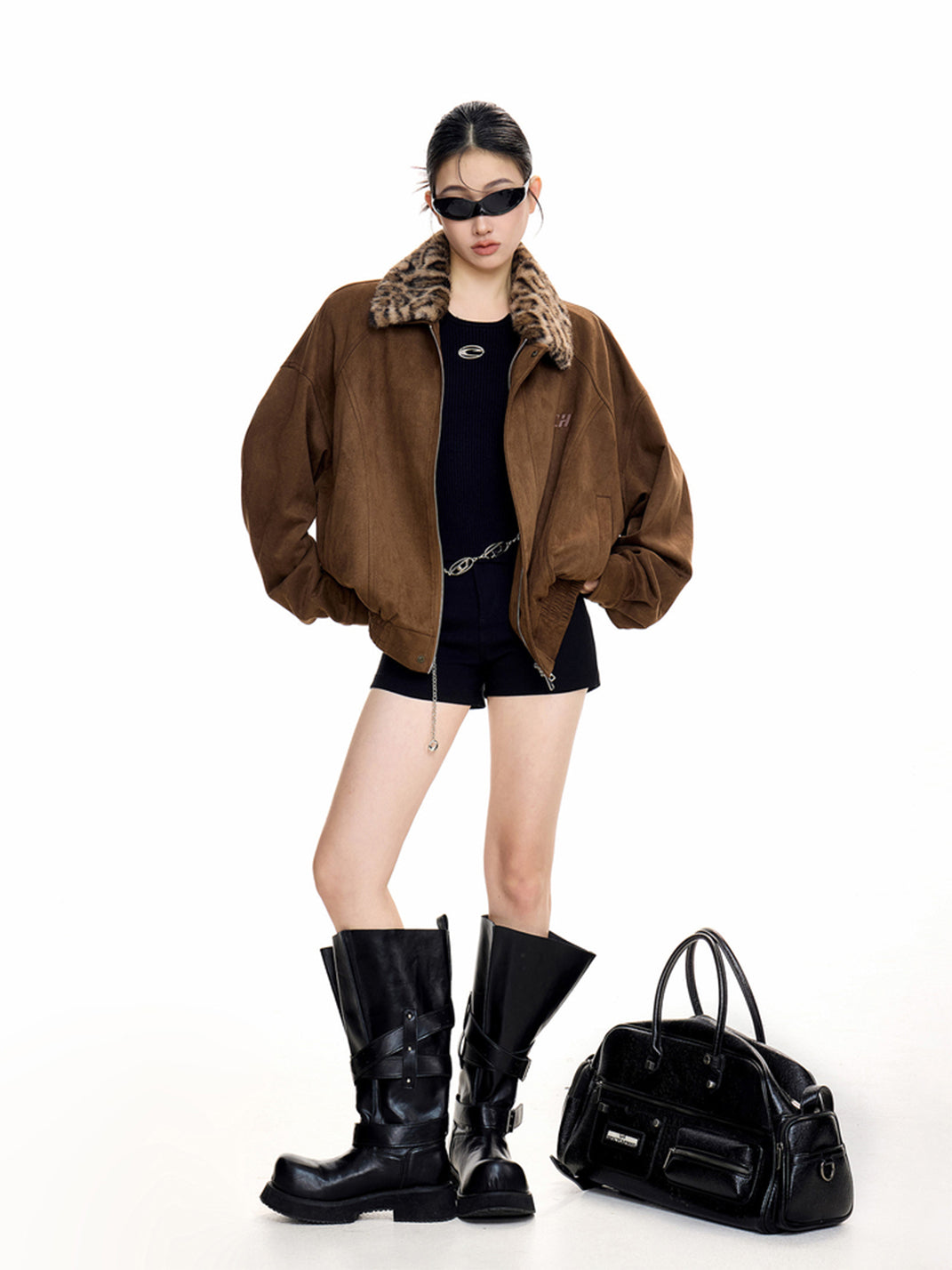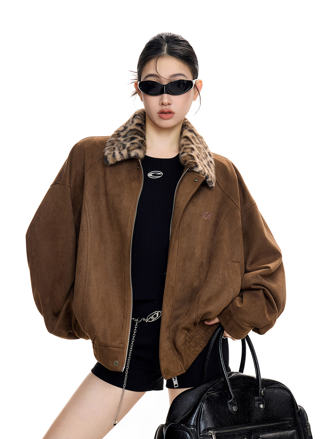 ICH MODE | Retro Suede Leopard Print Lapel Jacket Skip to content