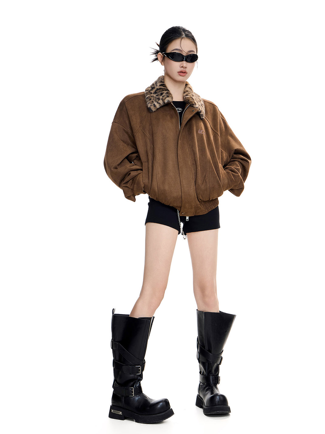 ICH MODE | Retro Suede Leopard Print Lapel Jacket