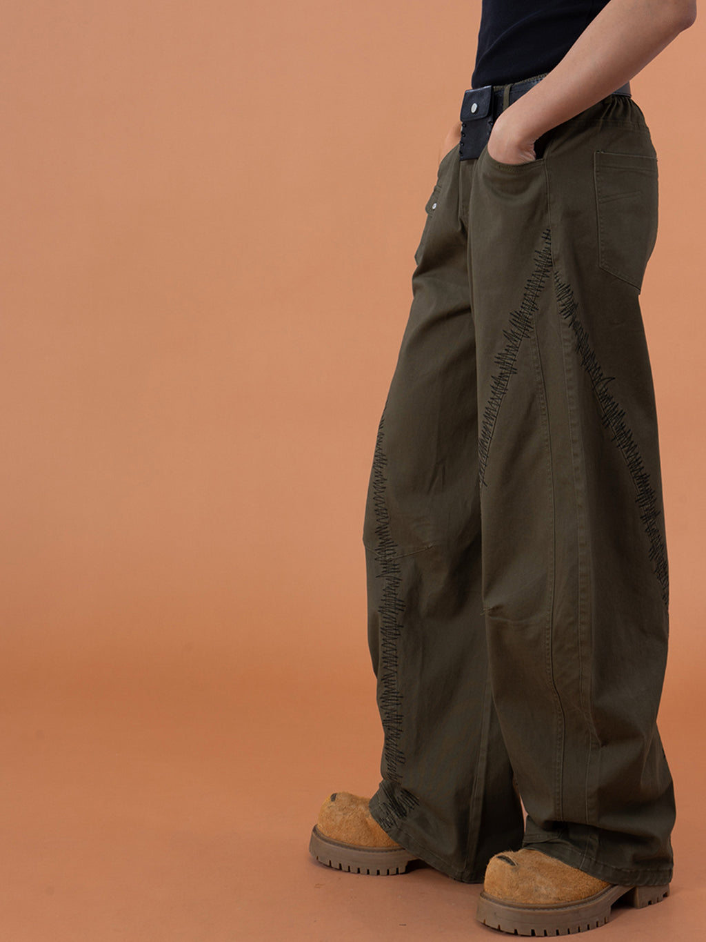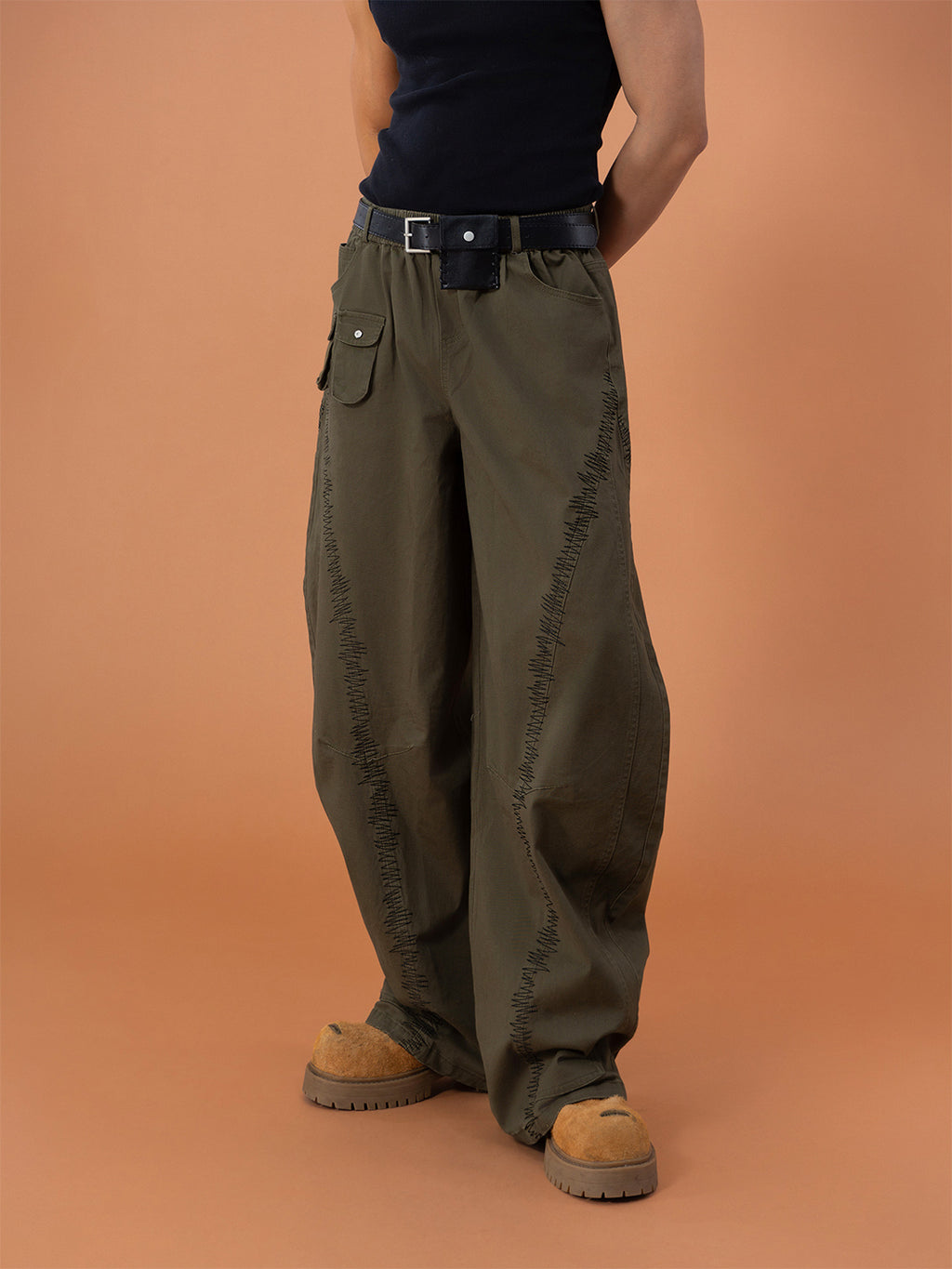 CLP | Waist Bag Multi-Pocket Curved Blade Wide-Leg Cargo Pants Skip to content
