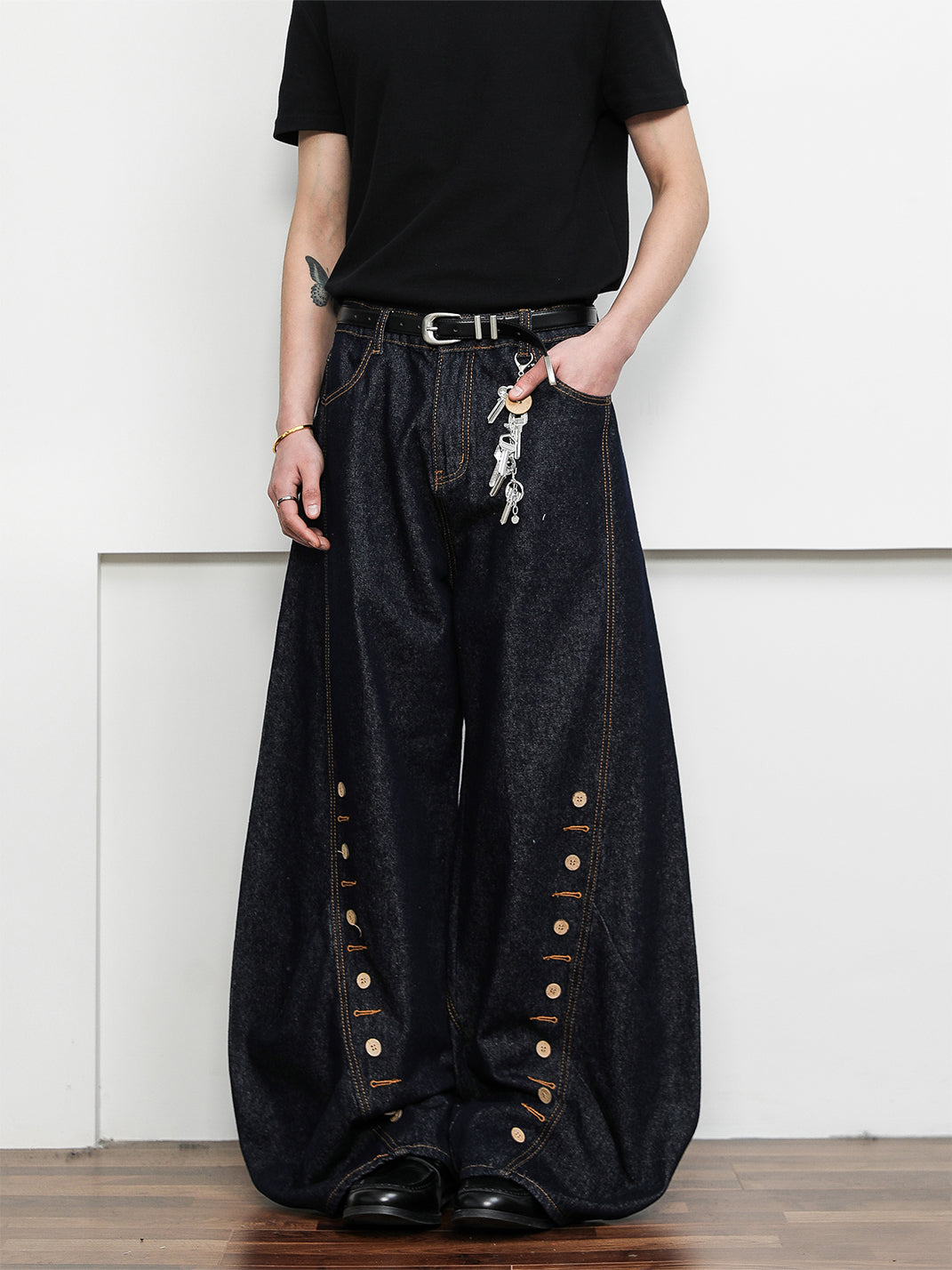 FLYOFF | Button Detail Wide-Legged Baggy Denim Pants