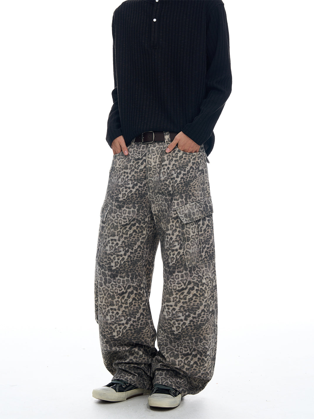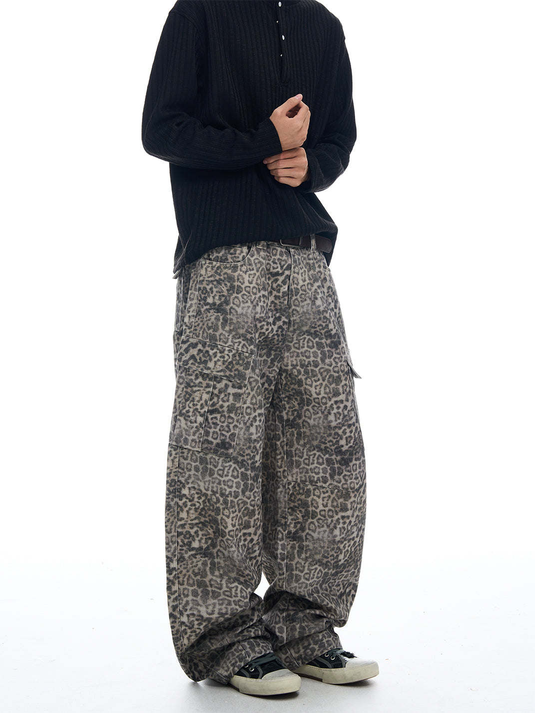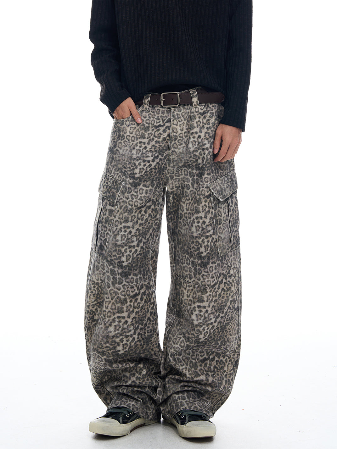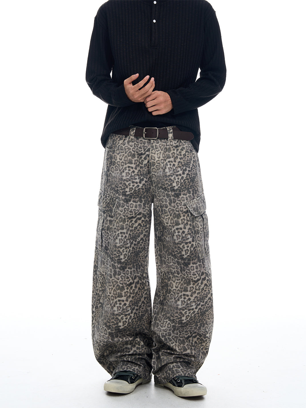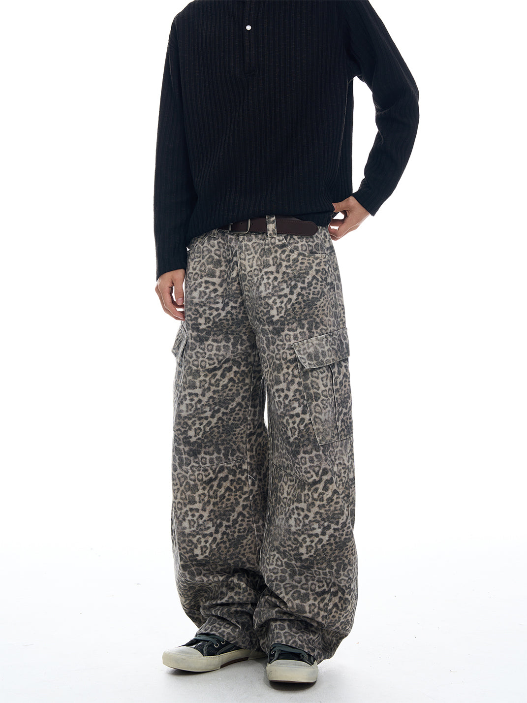 FLYOFF | Leopard Print Wide-Leg Cargo Pants