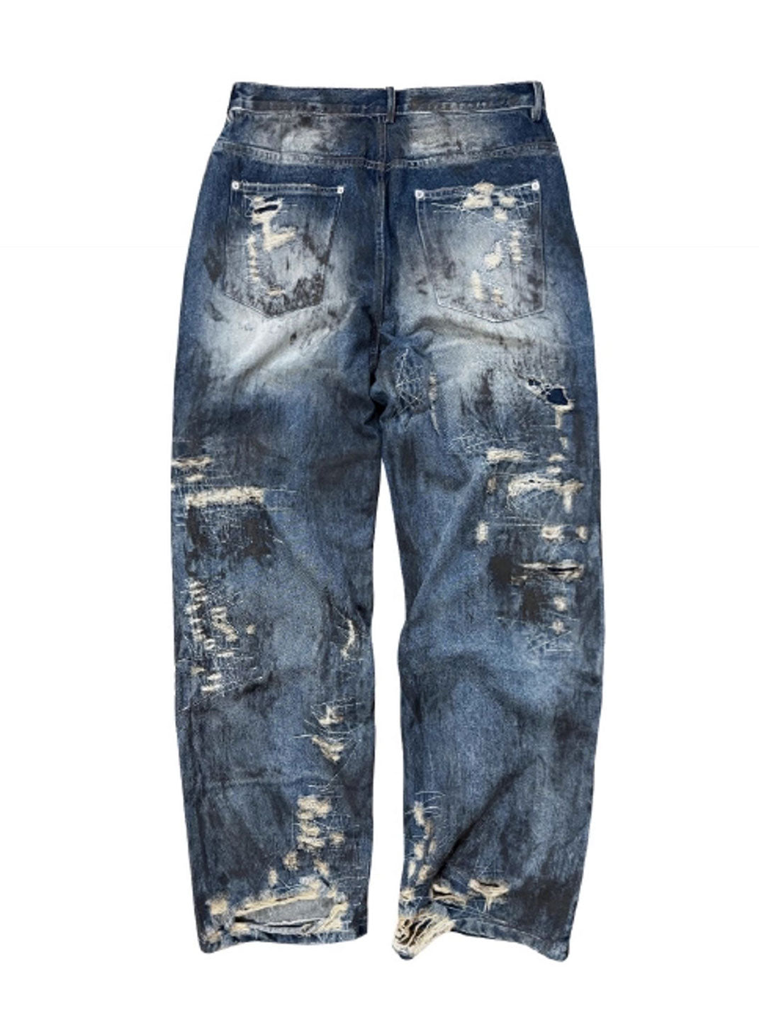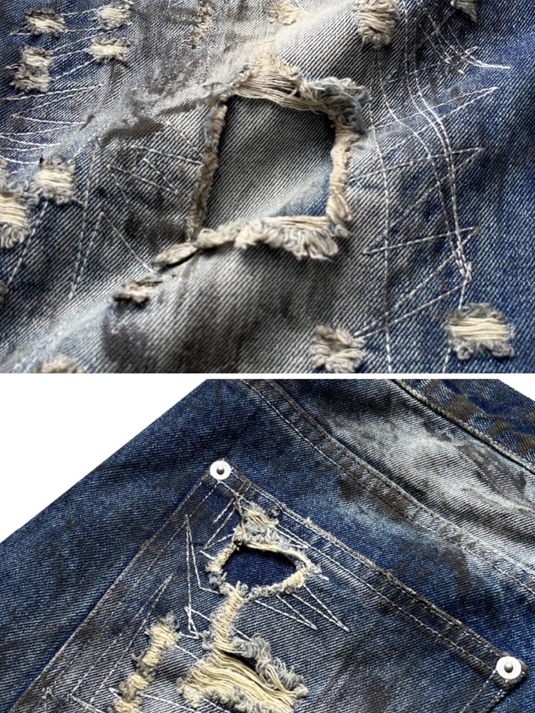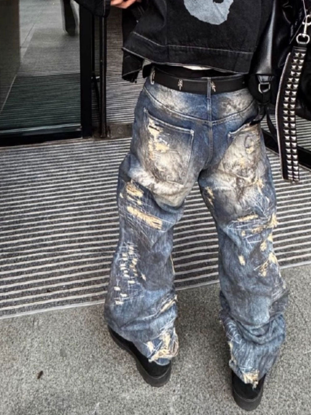 GOJOYJINNI | Distressed Dirty Dyeing Patchwork Denim Jeans Skip to content