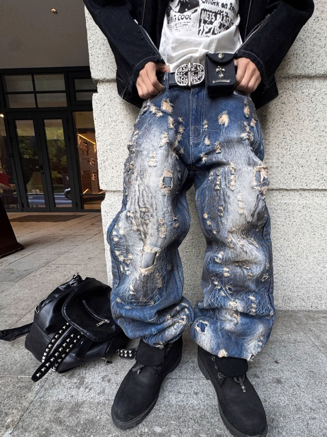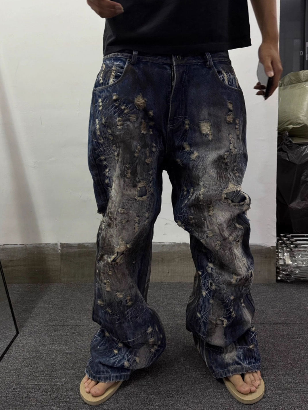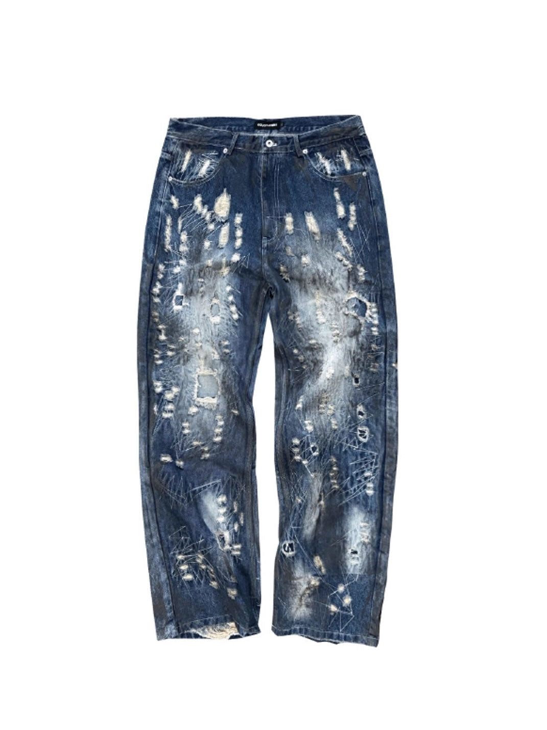 GOJOYJINNI | Distressed Dirty Dyeing Patchwork Denim Jeans Skip to content