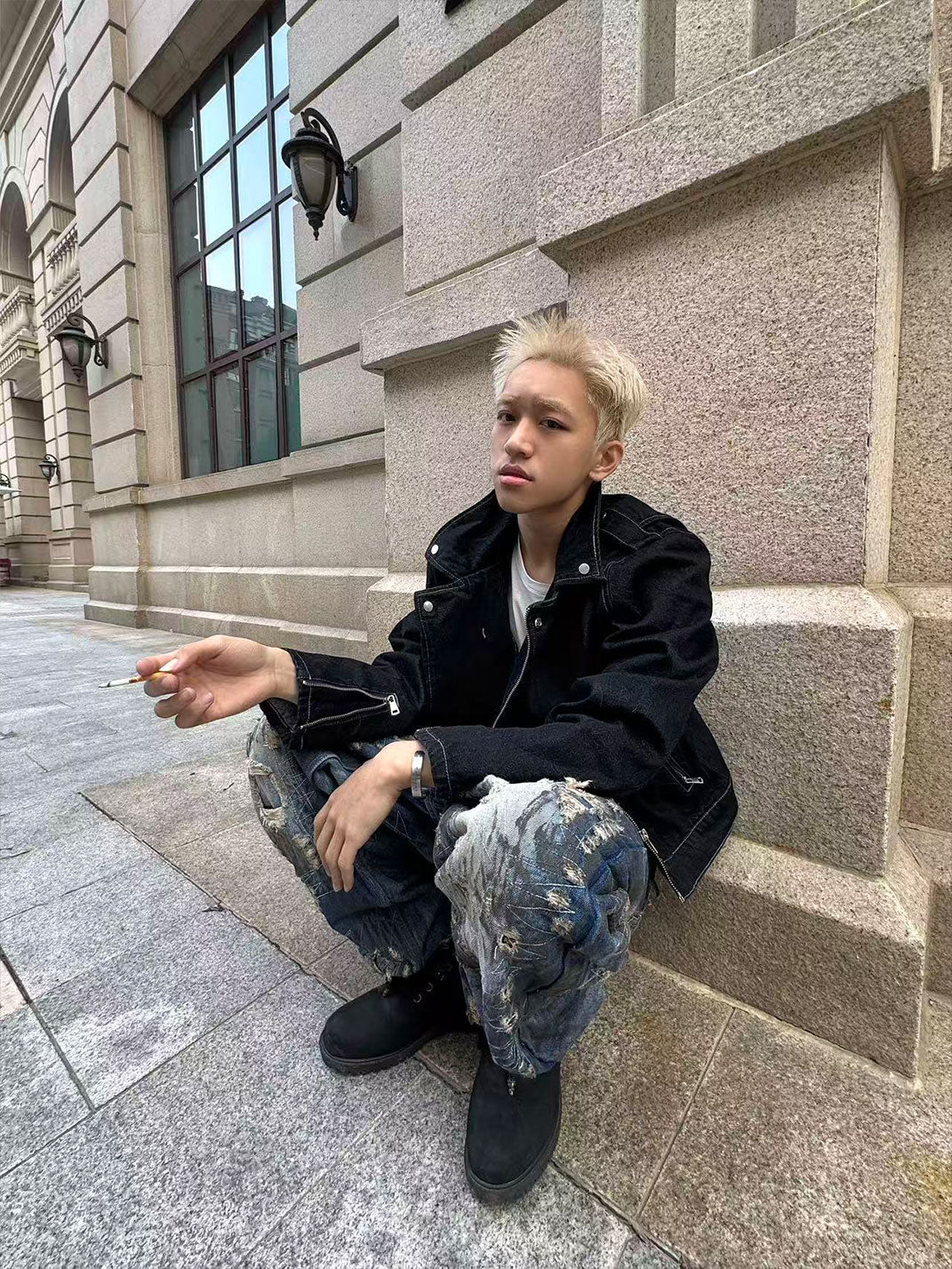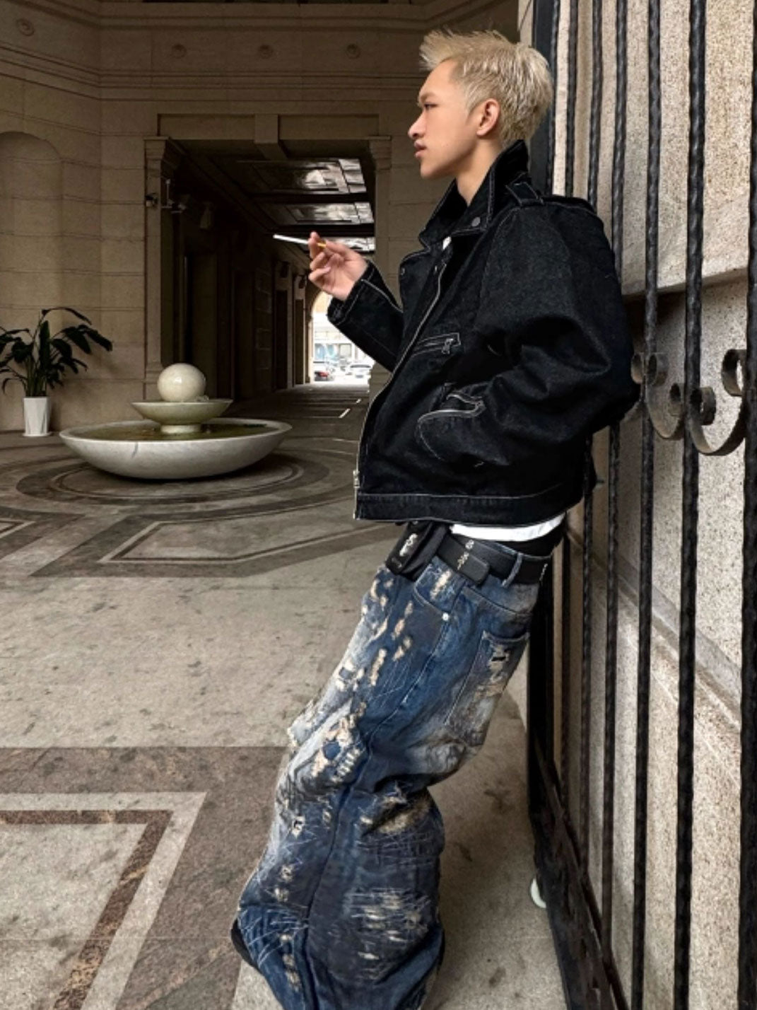GOJOYJINNI | Distressed Dirty Dyeing Patchwork Denim Jeans