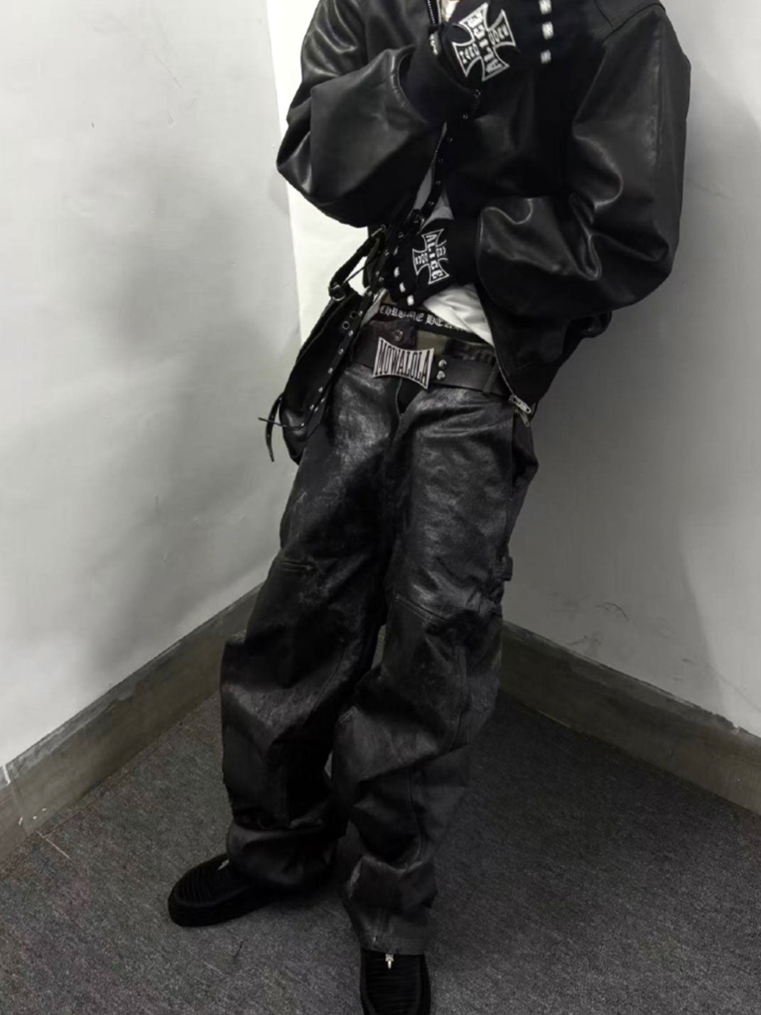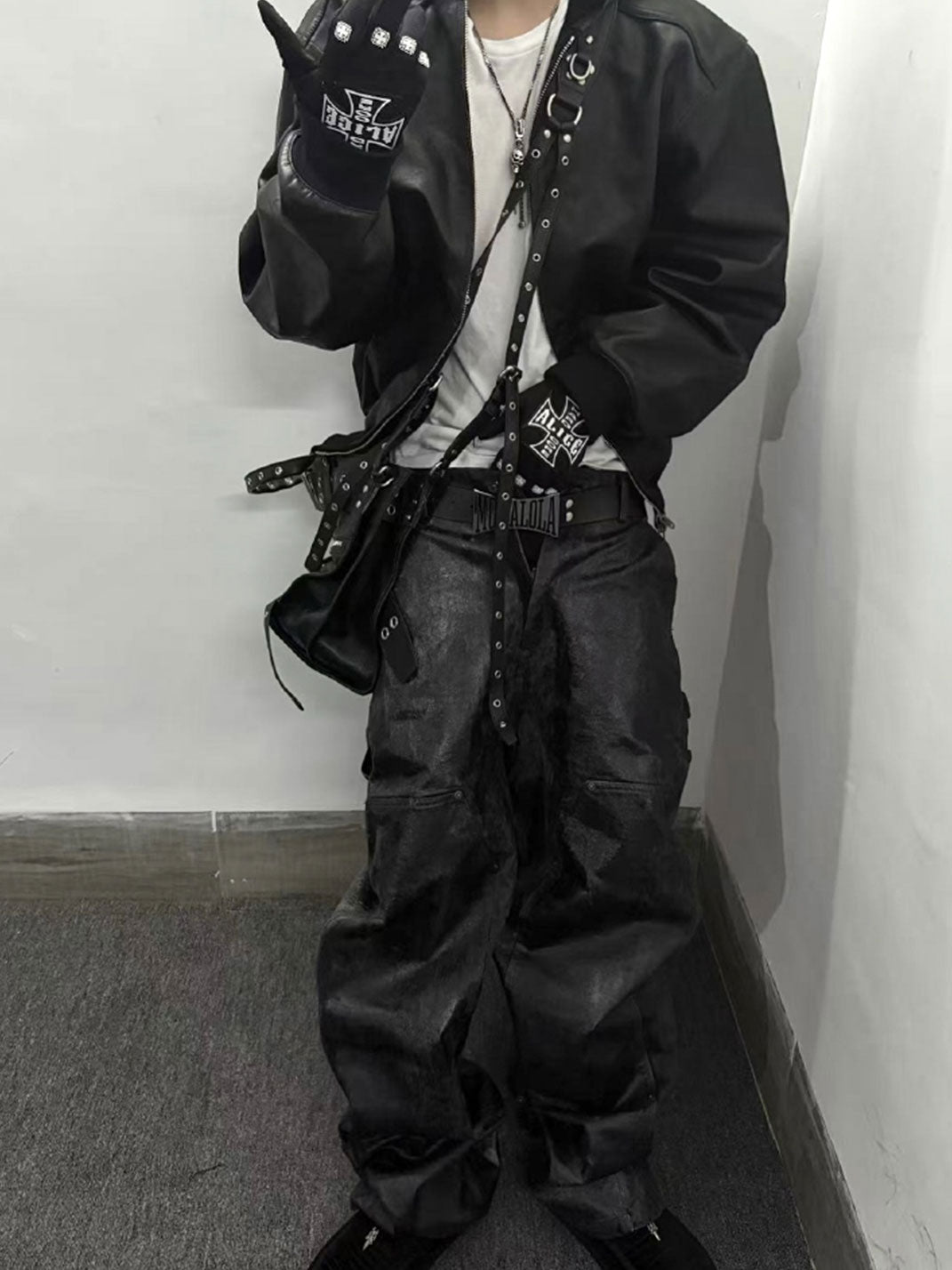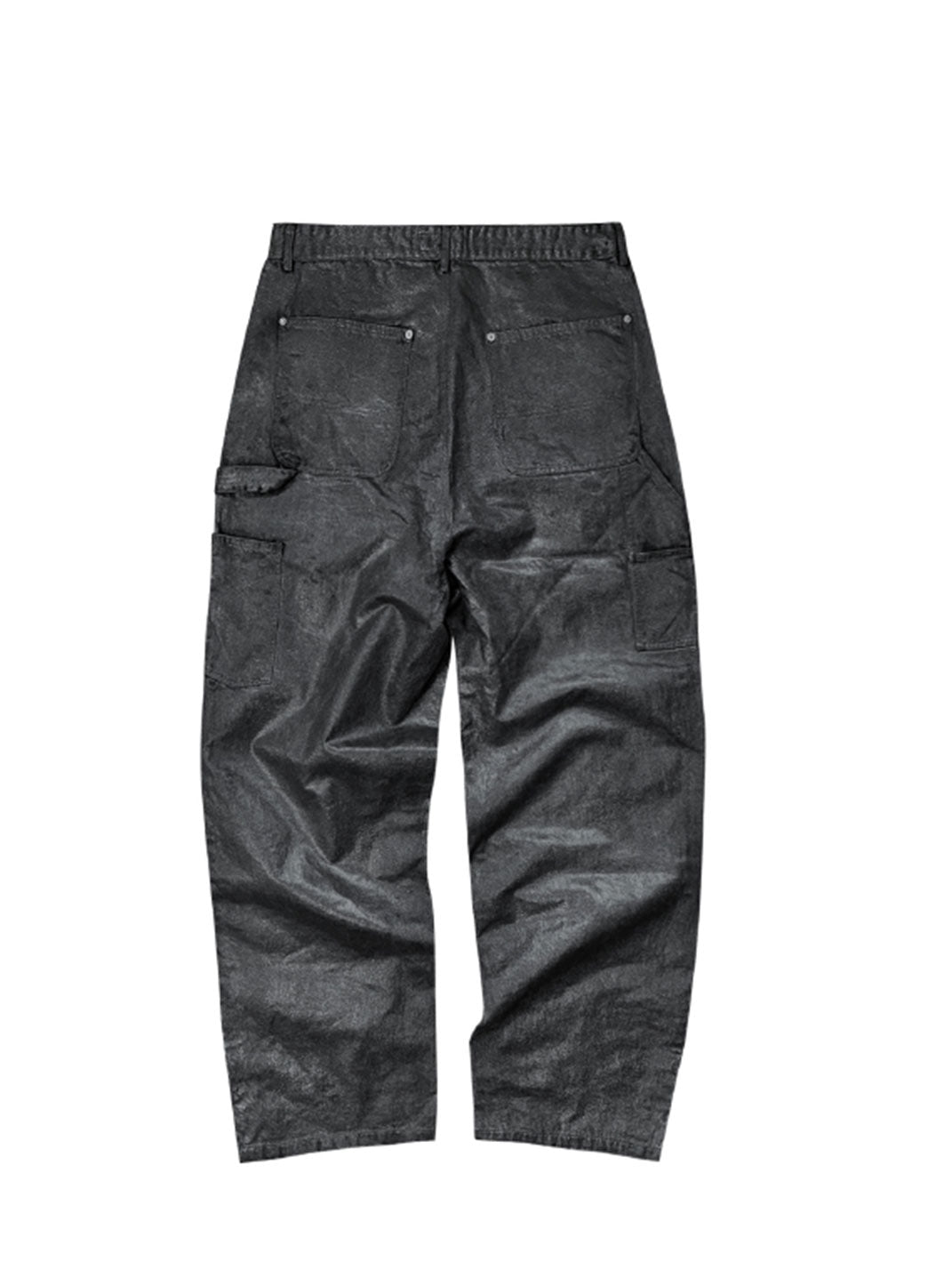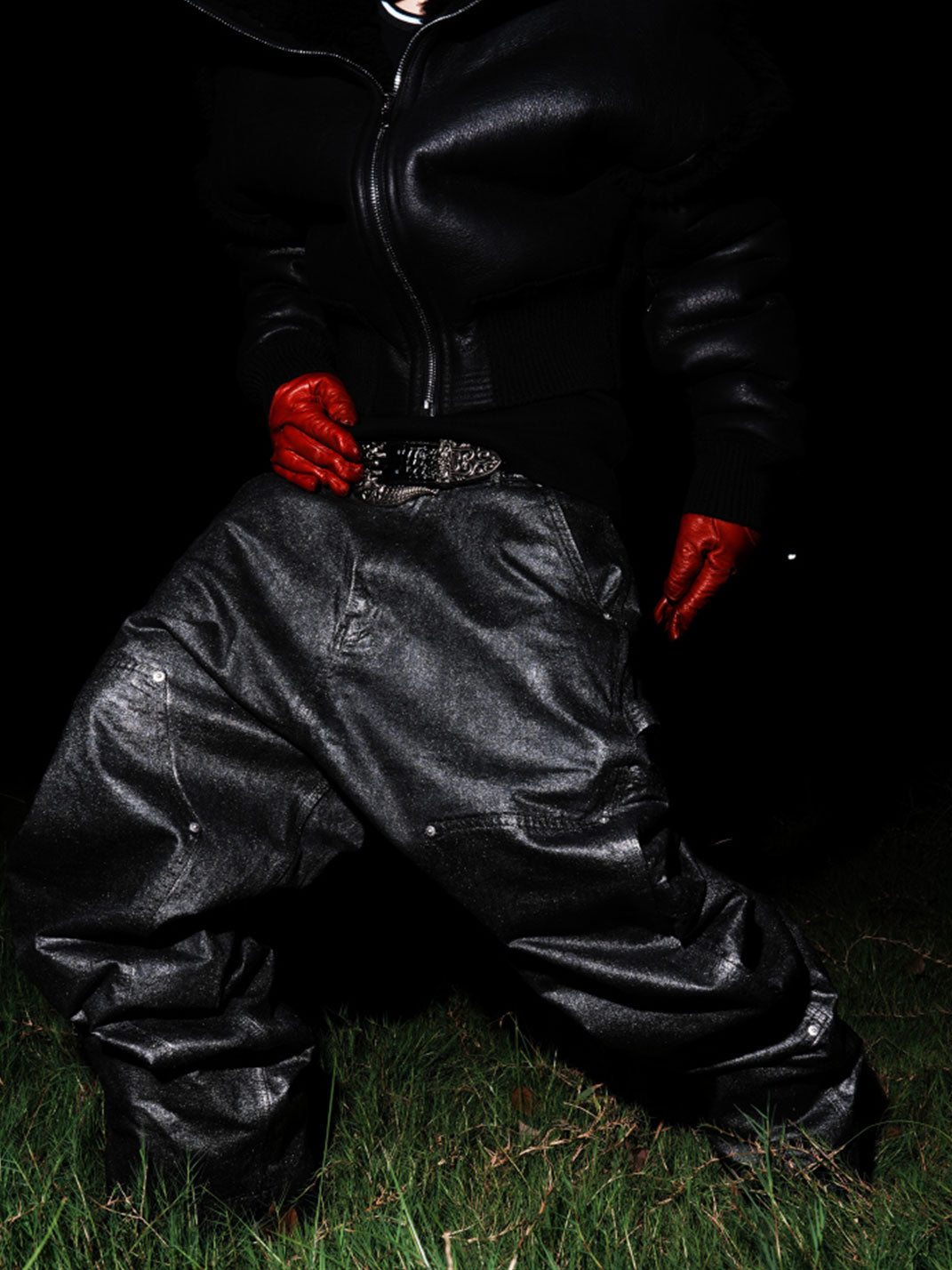 GOJOYJINNI | Handcrafted Waxed Silver-Coated Wide-Leg Denim Pants Skip to content
