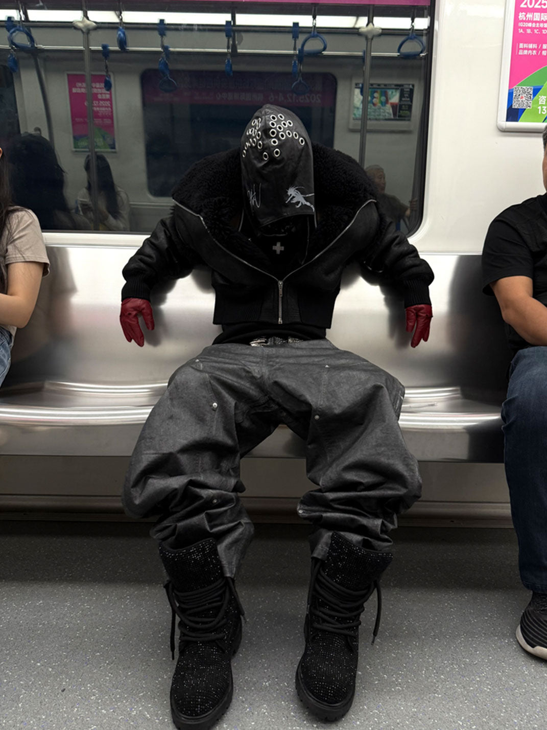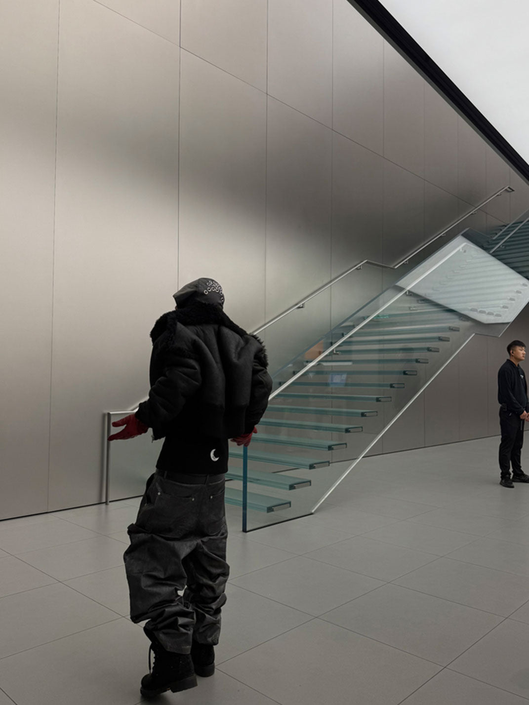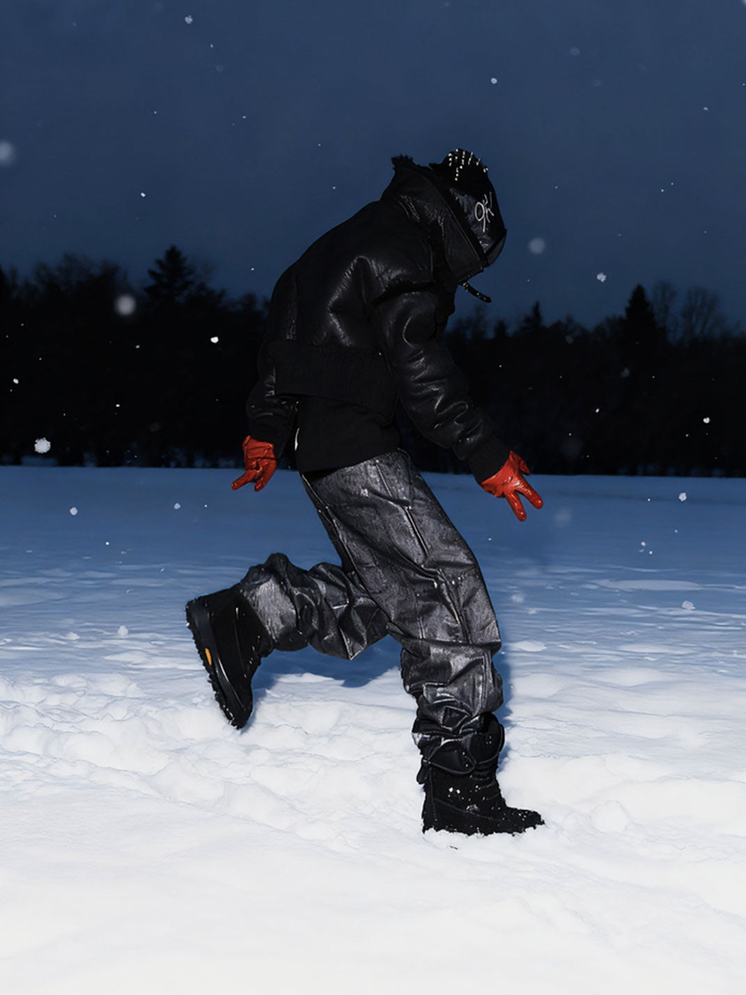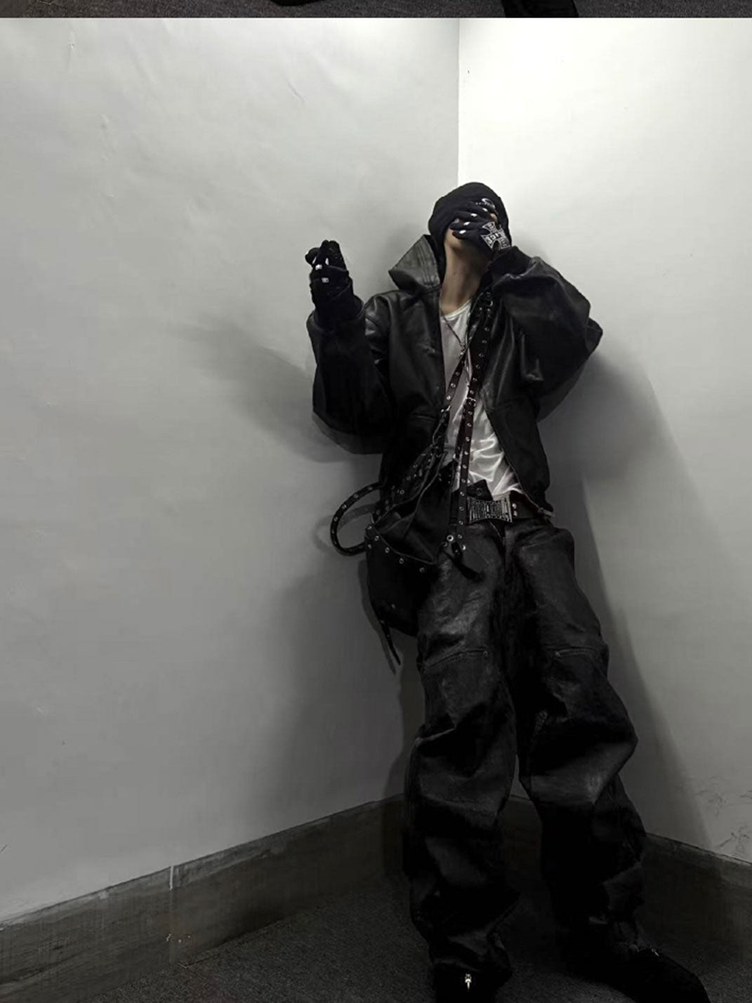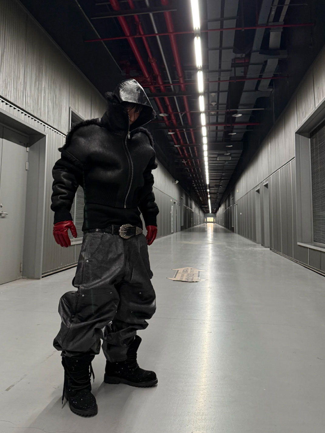 GOJOYJINNI | Handcrafted Waxed Silver-Coated Wide-Leg Denim Pants Skip to content