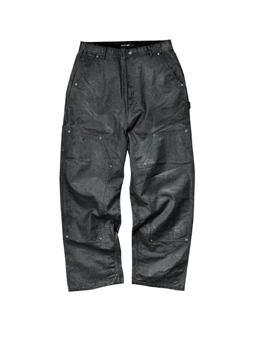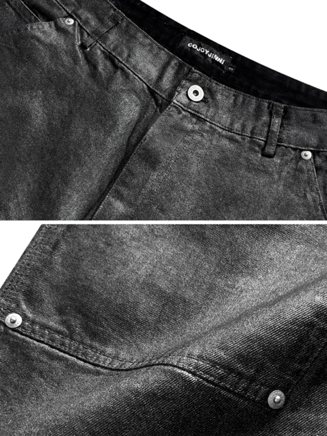 GOJOYJINNI | Handcrafted Waxed Silver-Coated Wide-Leg Denim Pants