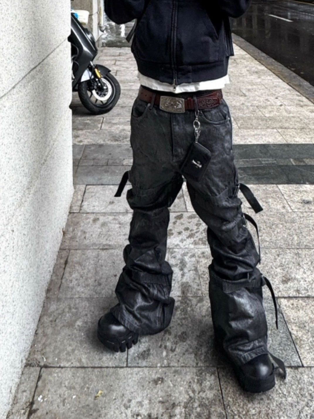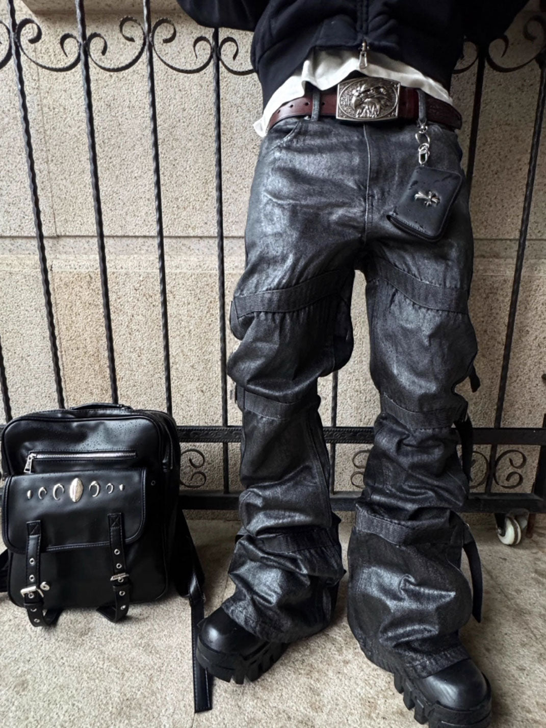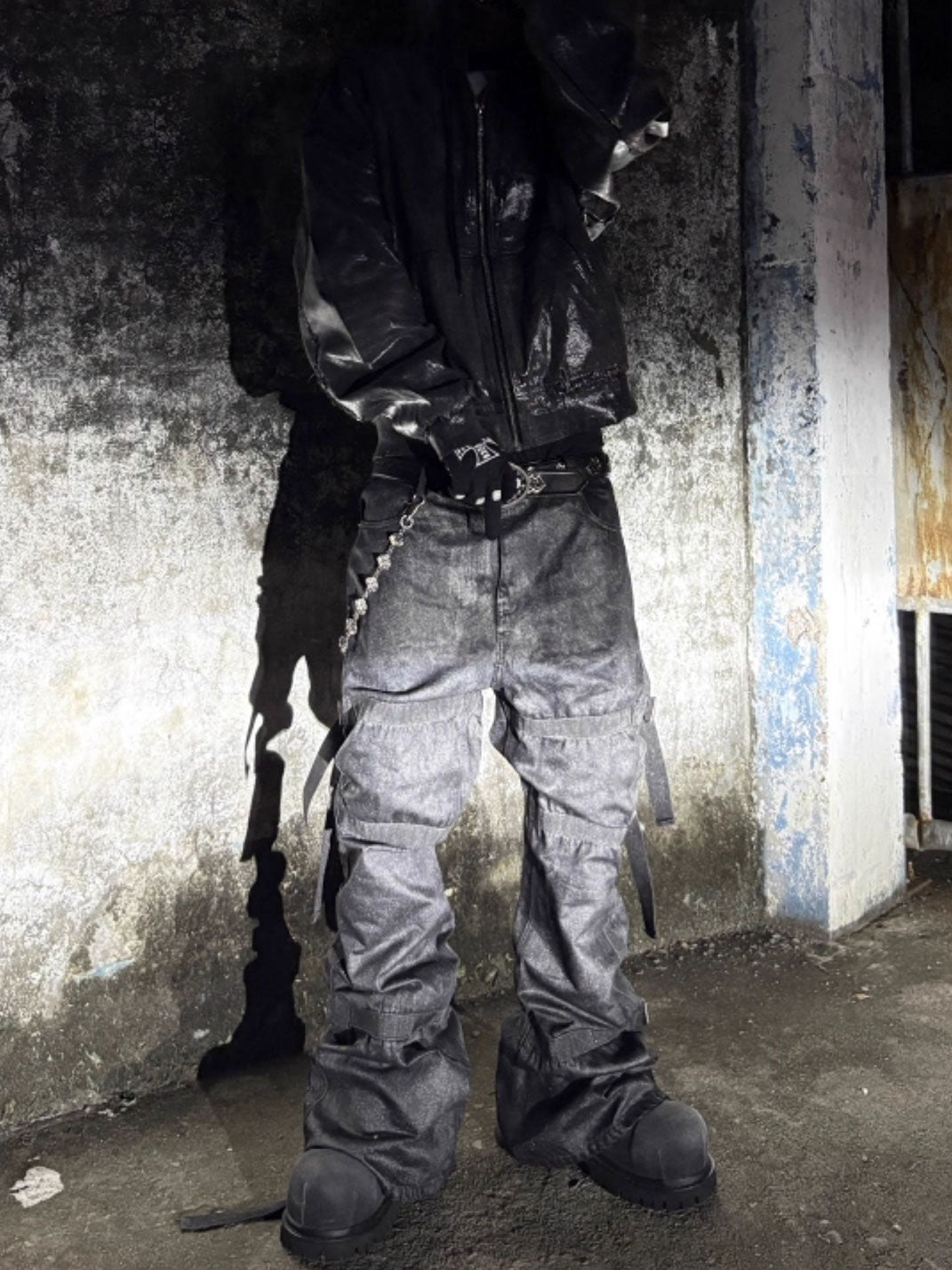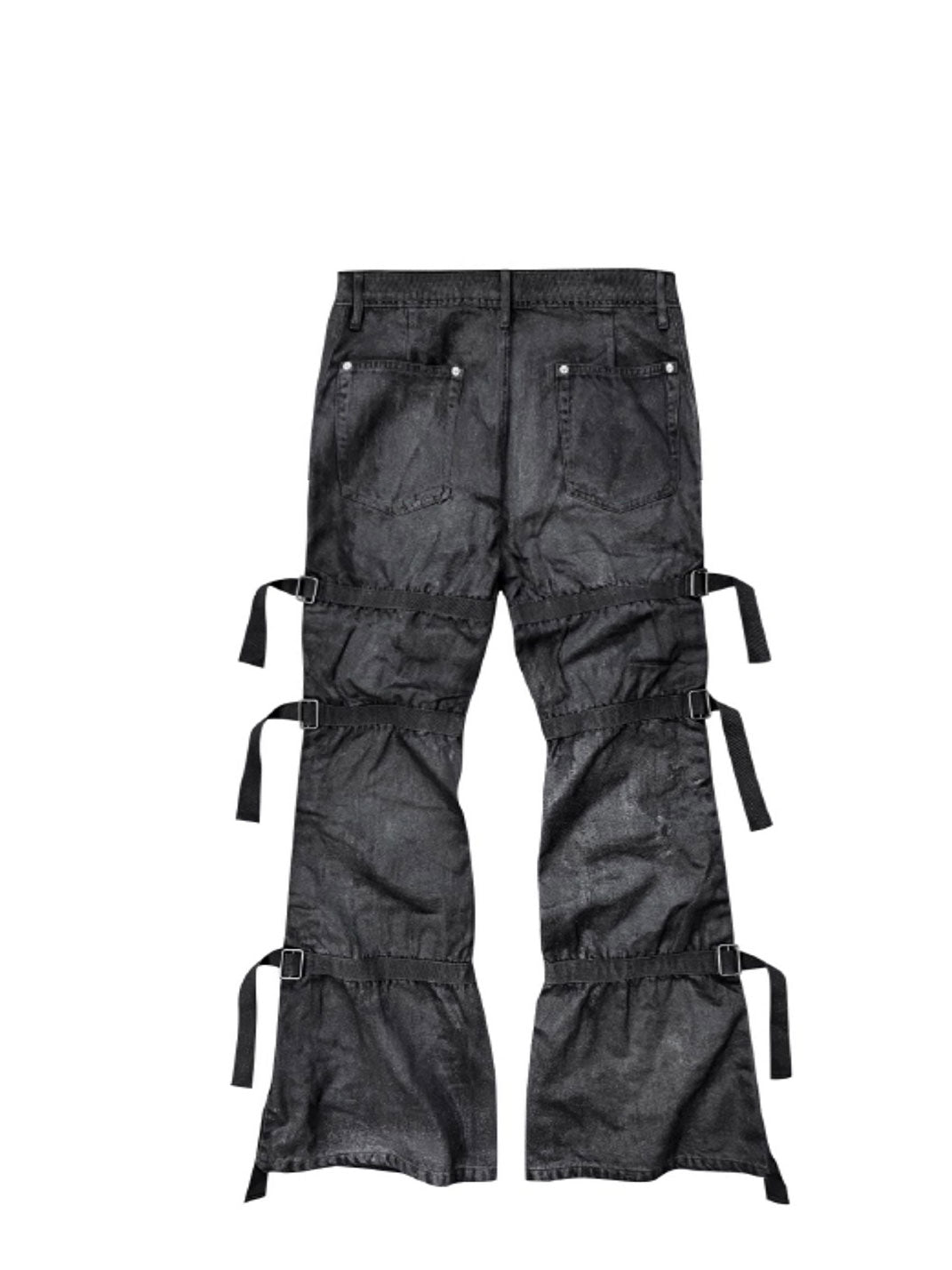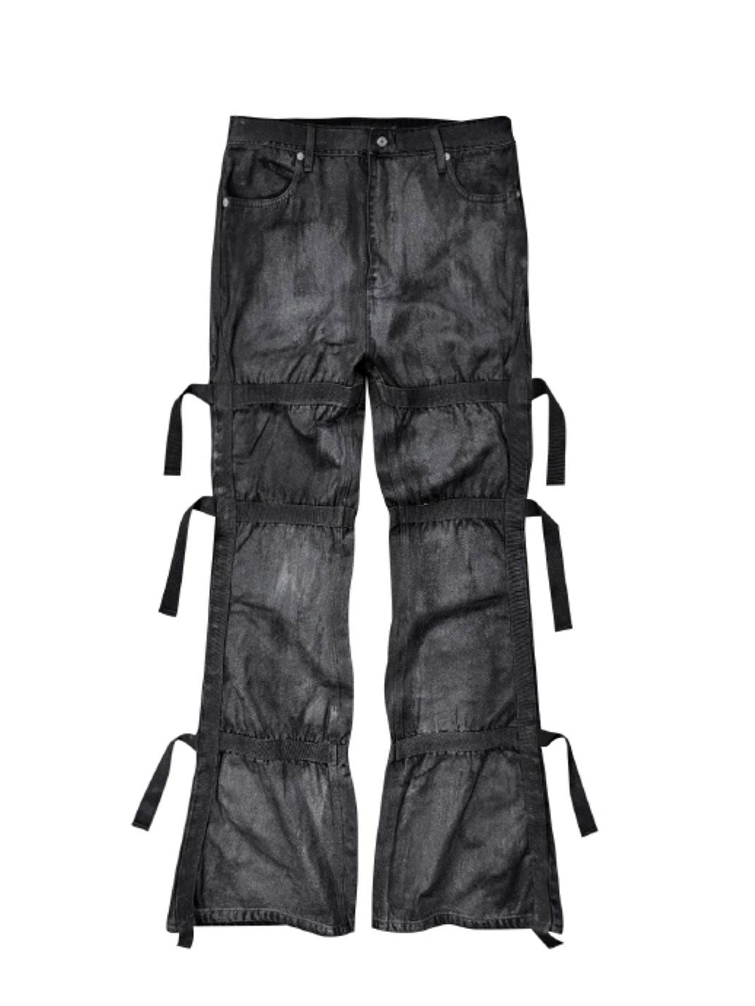 GOJOYJINNI | Waxed Finish Wide-Leg Flare Jeans Skip to content