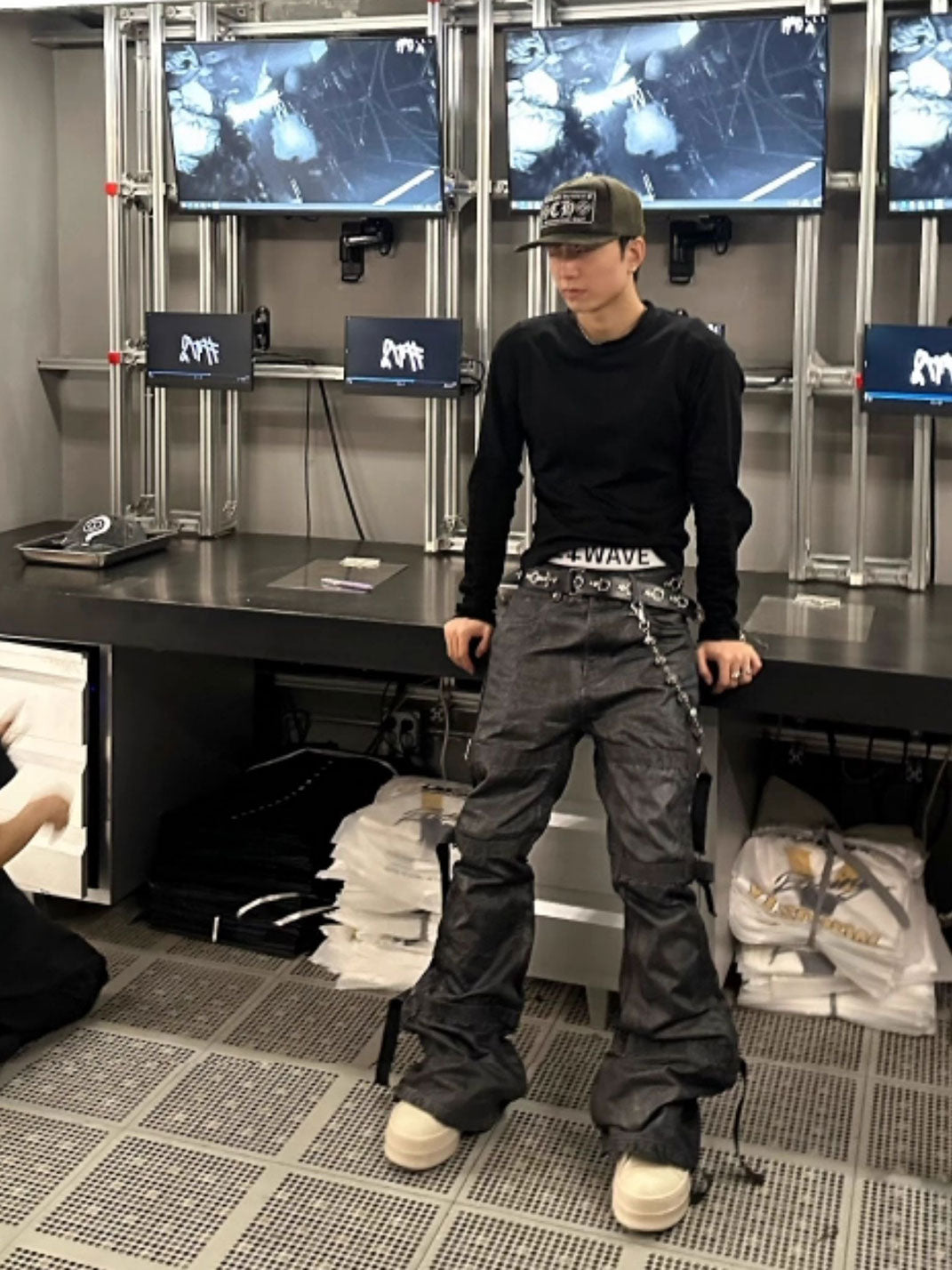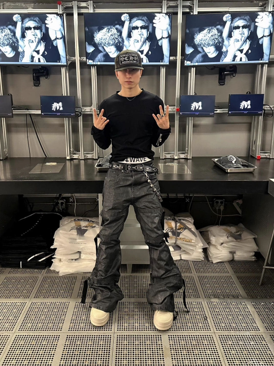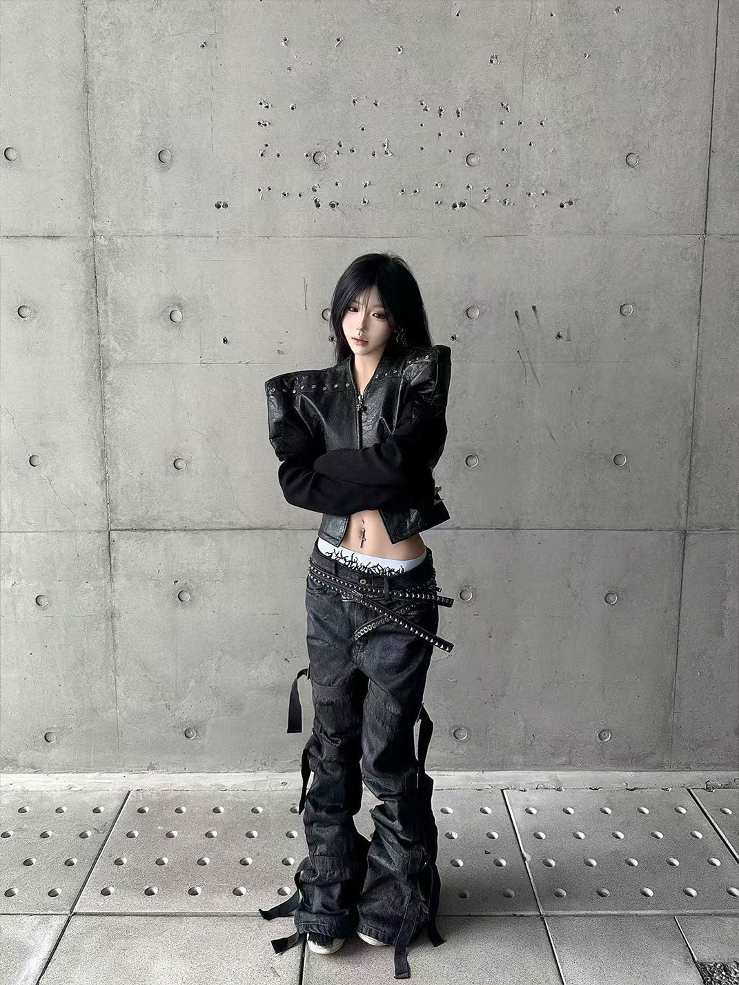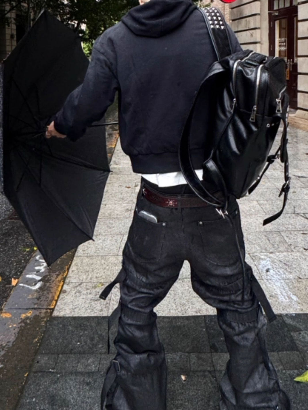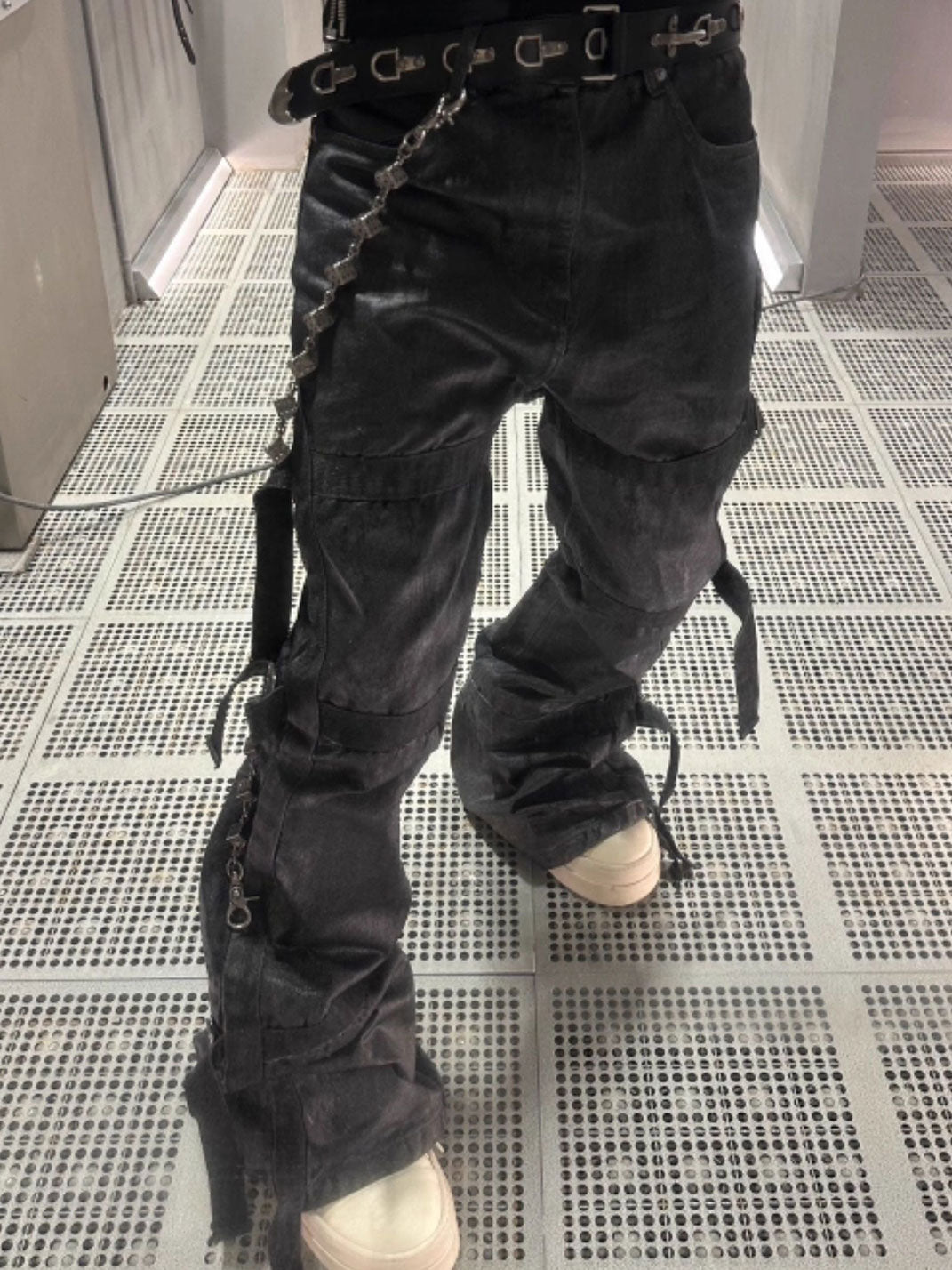 GOJOYJINNI | Waxed Finish Wide-Leg Flare Jeans Skip to content