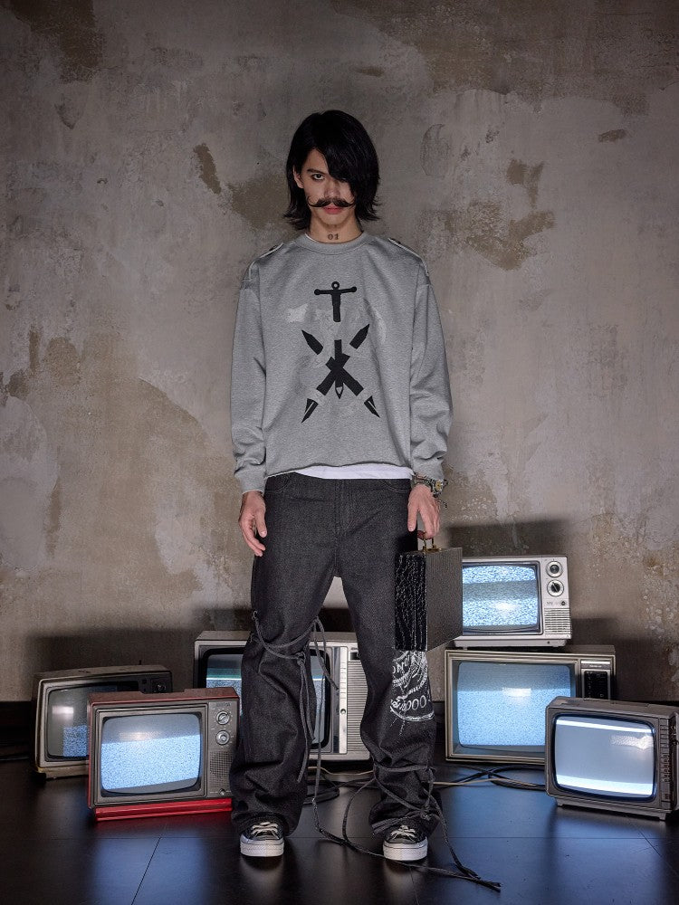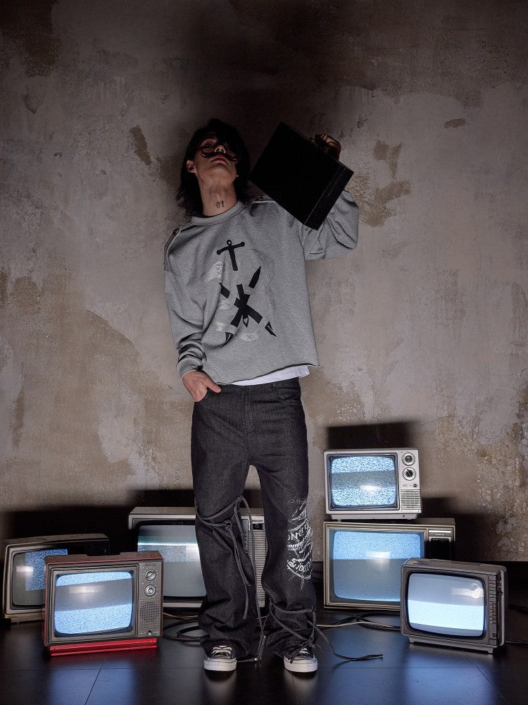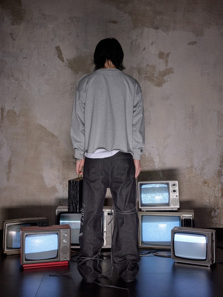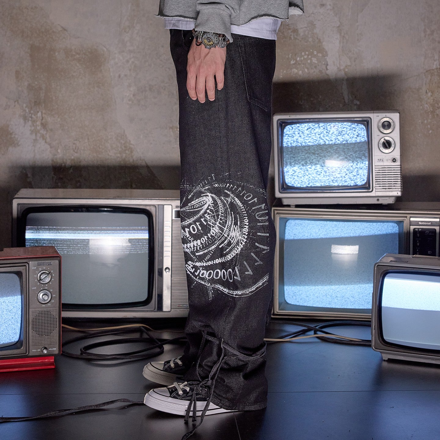 NOTHINGNESS WORLD | Double-print lace-up raw denim jeans