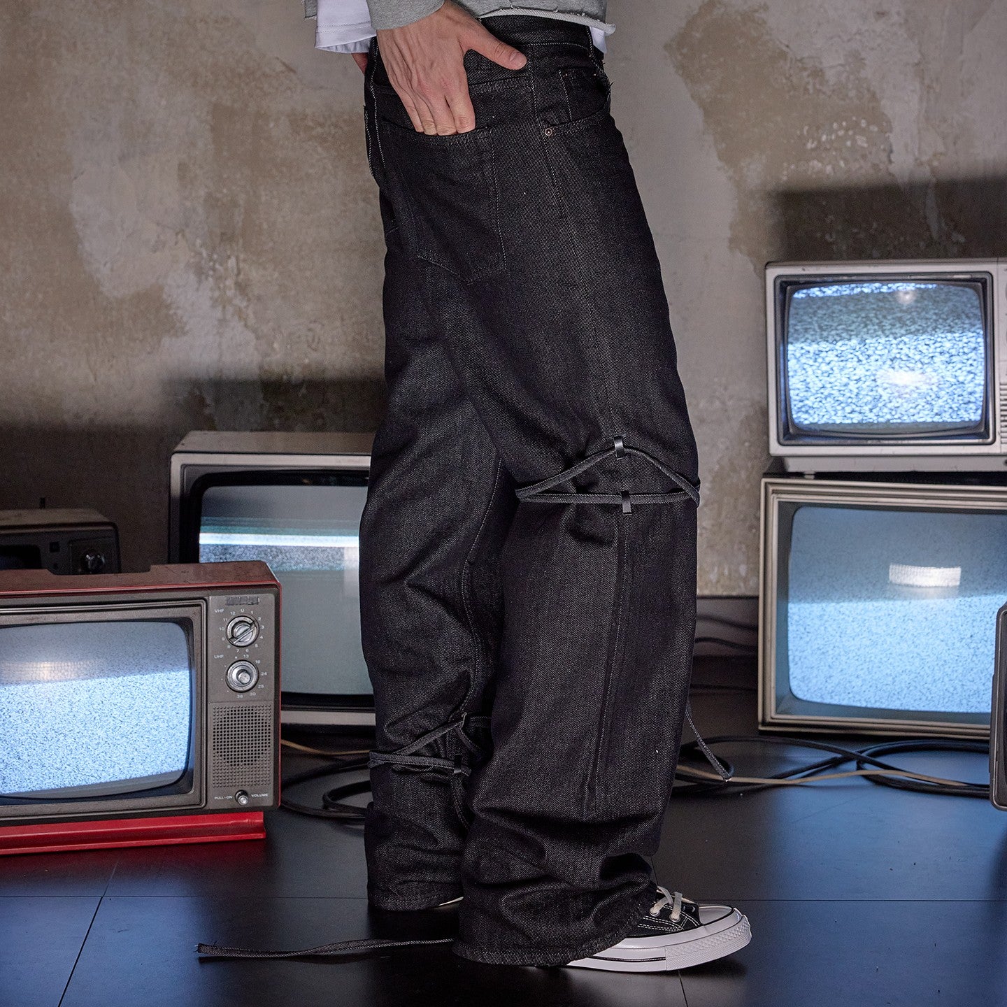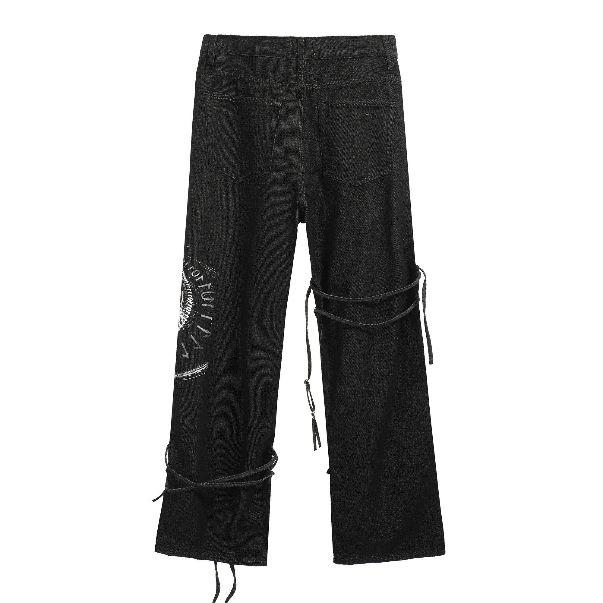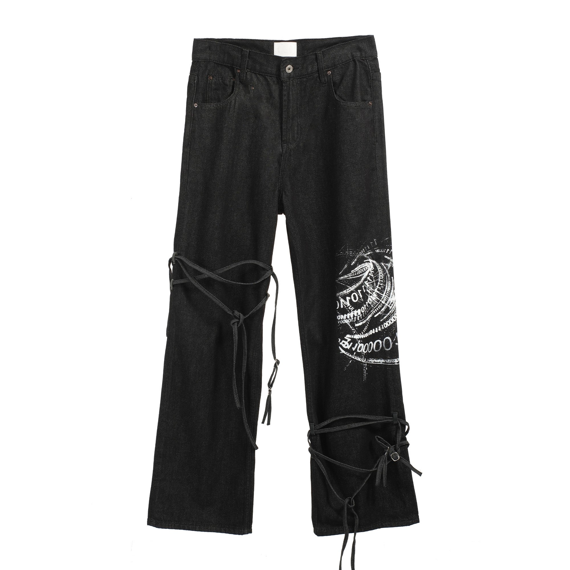 NOTHINGNESS WORLD | Double-print lace-up raw denim jeans Skip to content