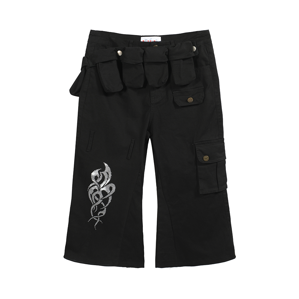 NOTHINGNESS WORLD | Multi-Pocket Flame Print Punk Pants