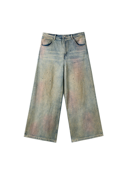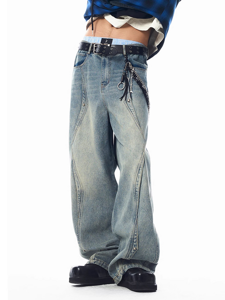 AMEXNOCAP丨Lightning Patch Gradient Stone Jeans