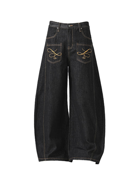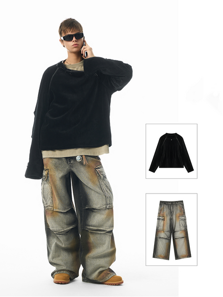 GOJOYJINNI | Large Pocket Straight Baggy Jeans