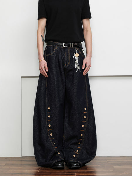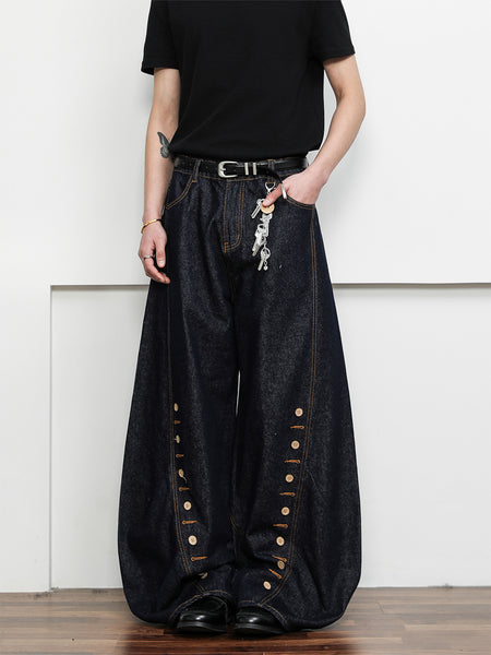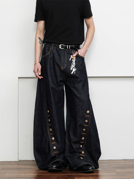 FLYOFF | Button Detail Wide-Legged Baggy Denim ...