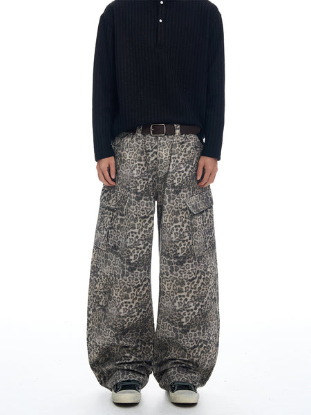 FLYOFF | Leopard Print Wide-Leg Cargo Pants