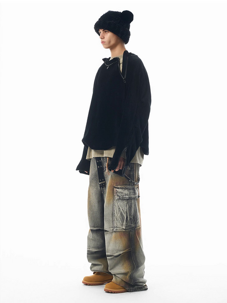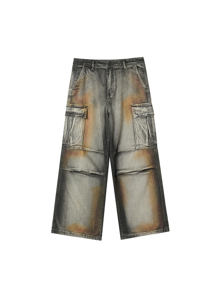 JHYQ | Vintage-Style Cargo Work Denim Pants wi...