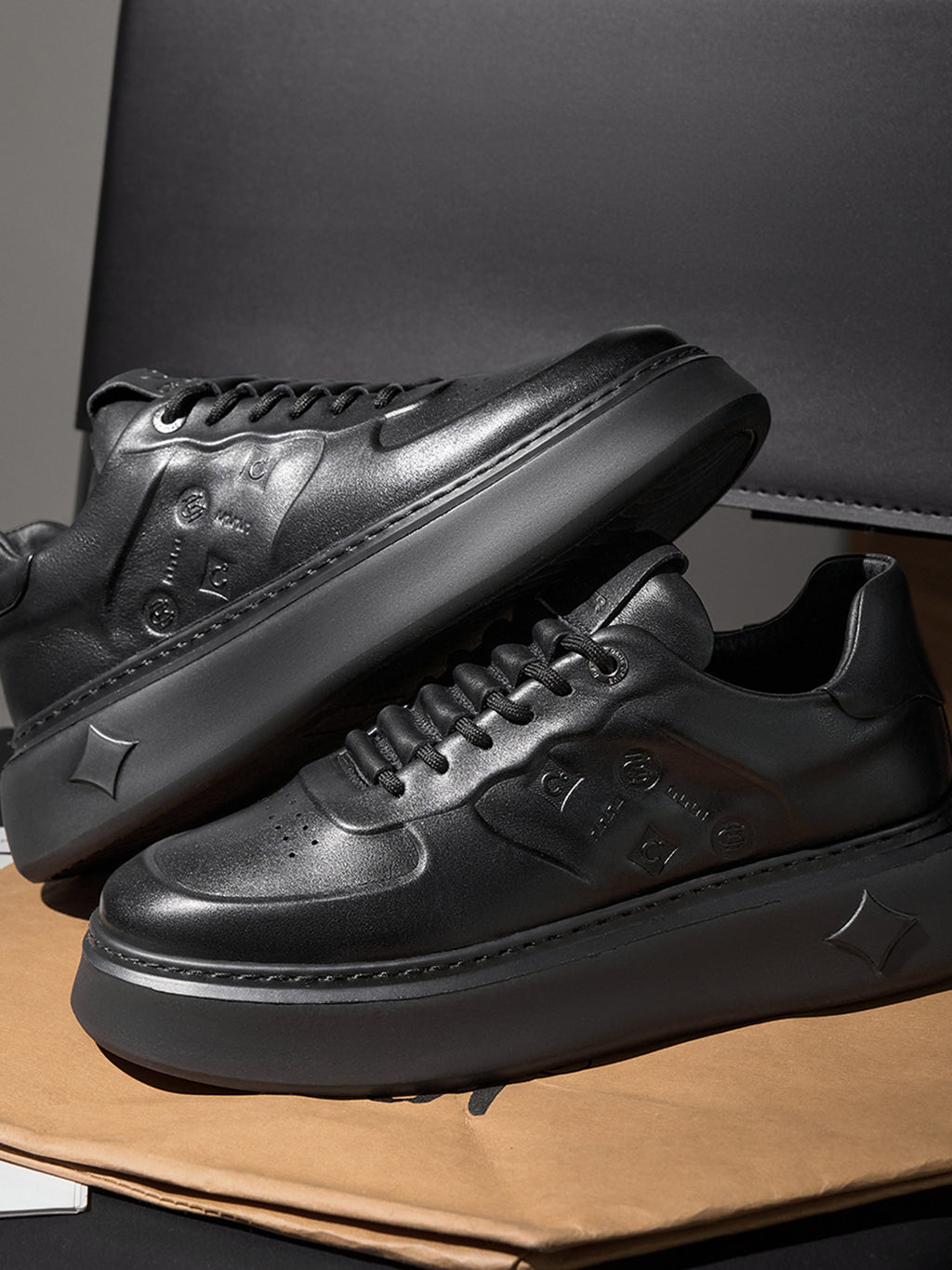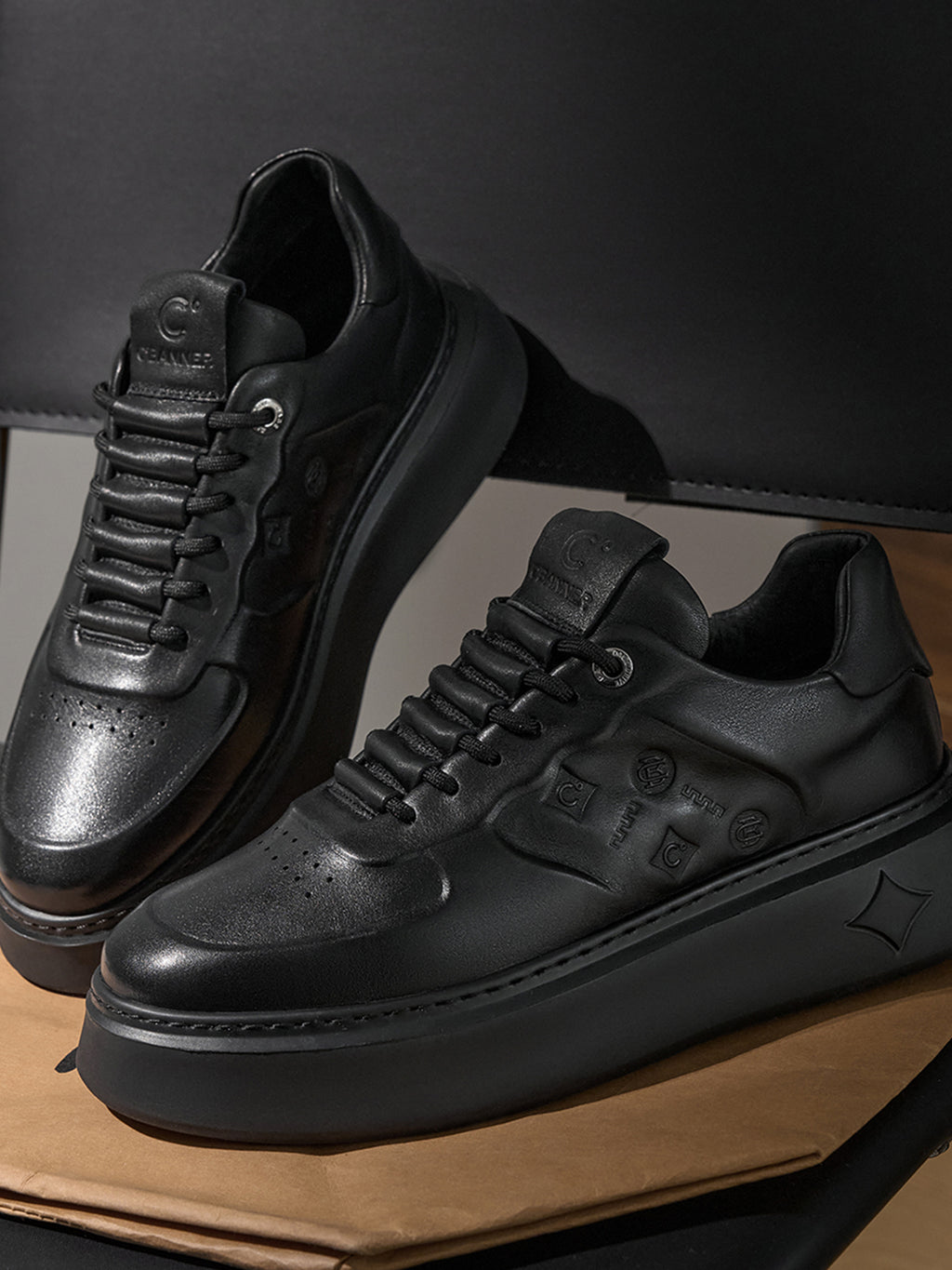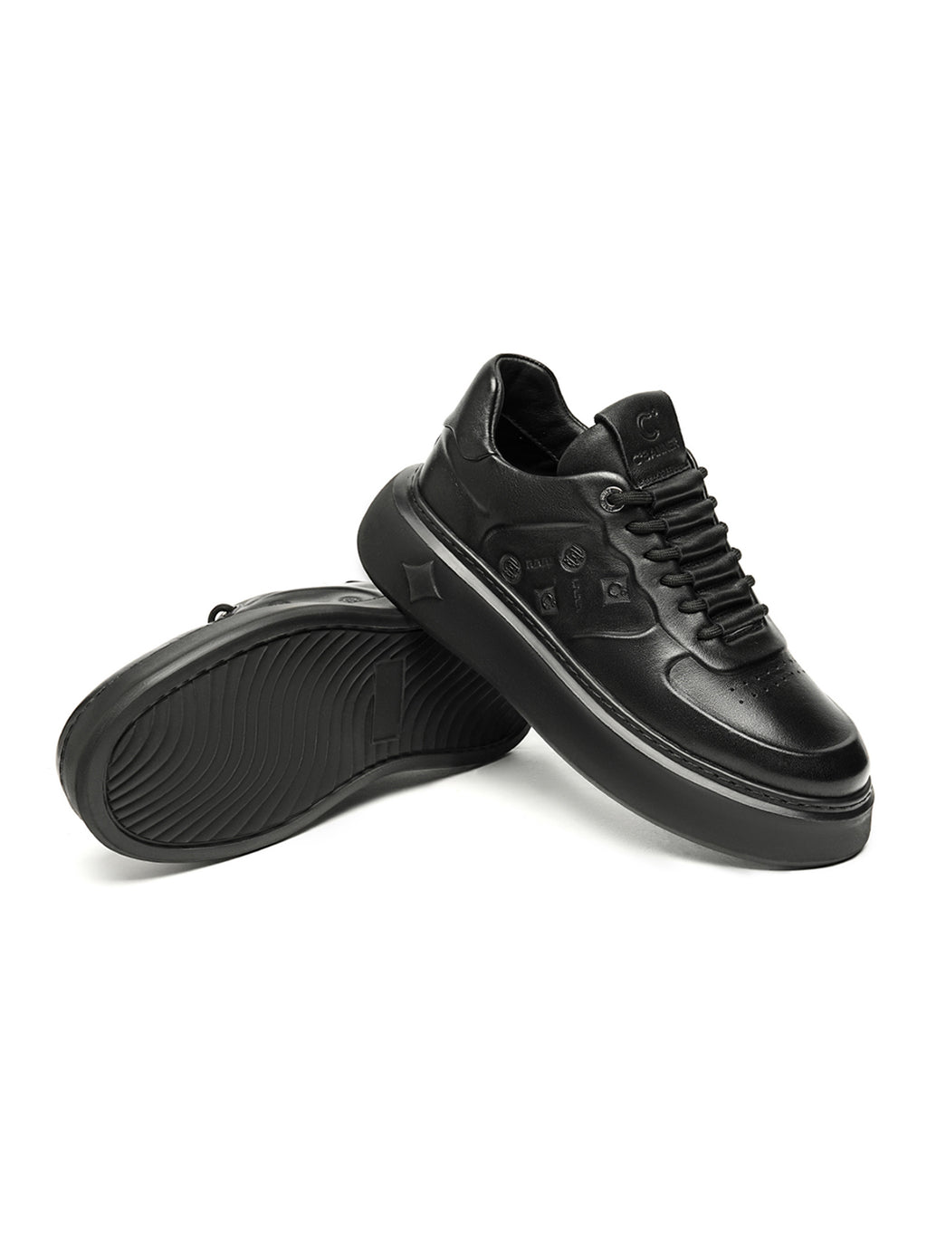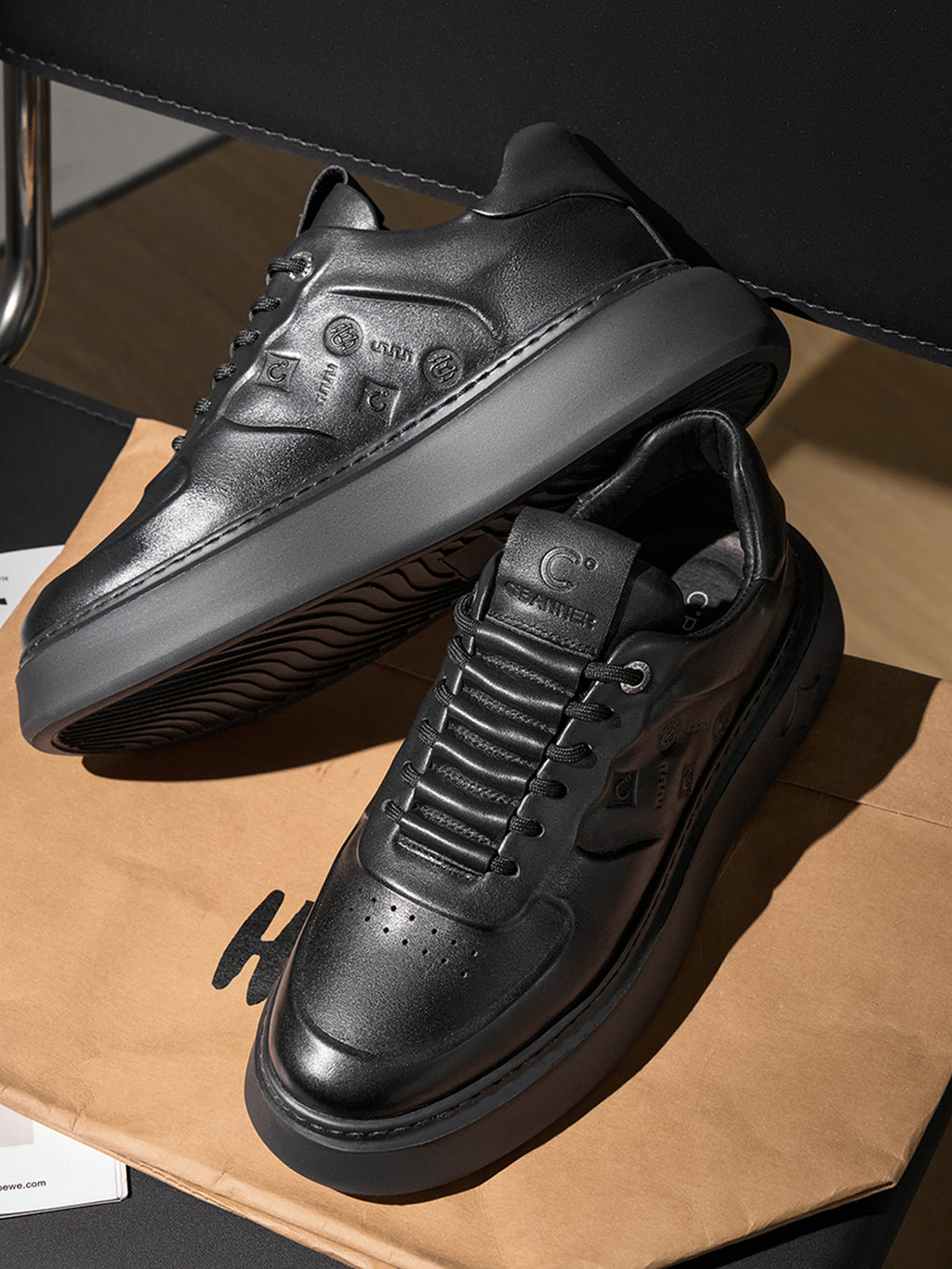 C.BANNER | Black Embossed Leather Platform Sneakers