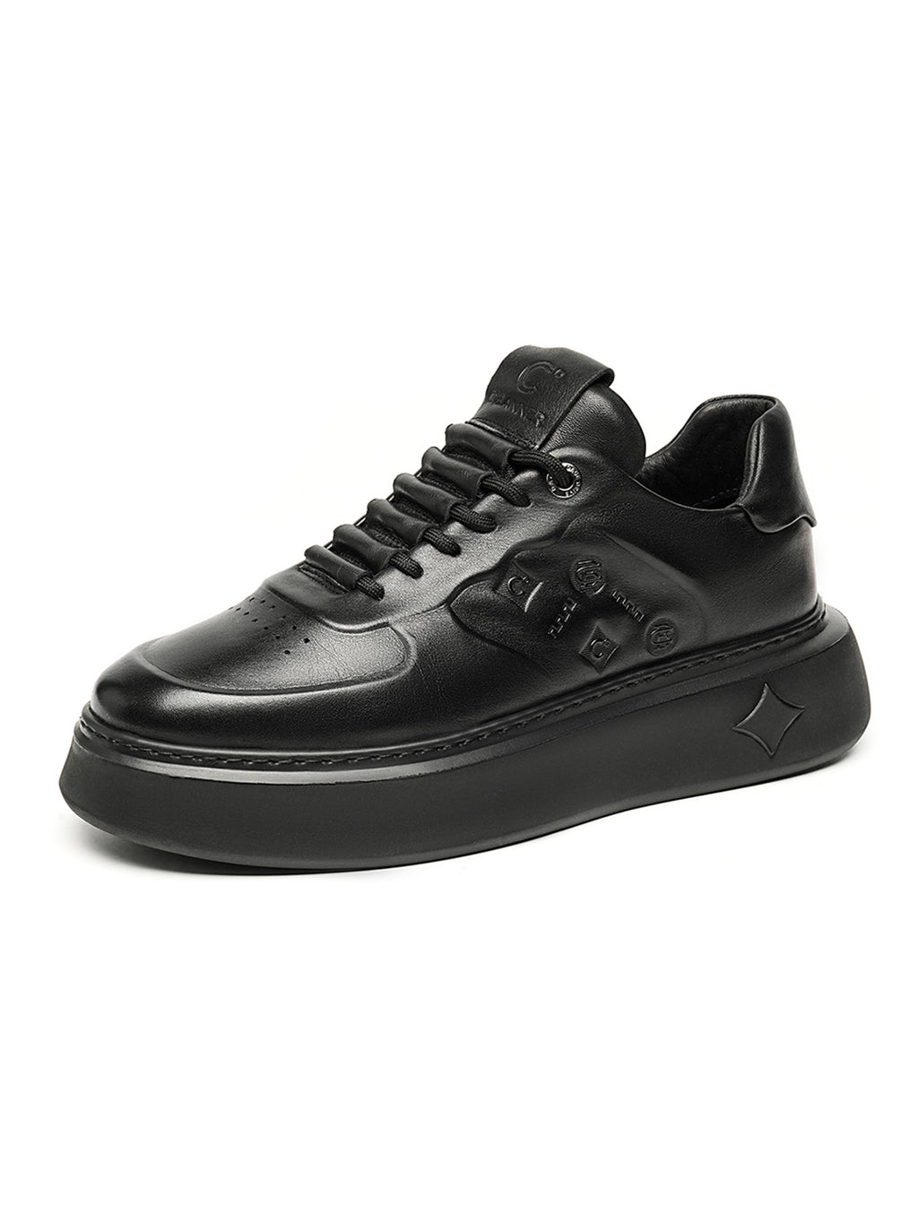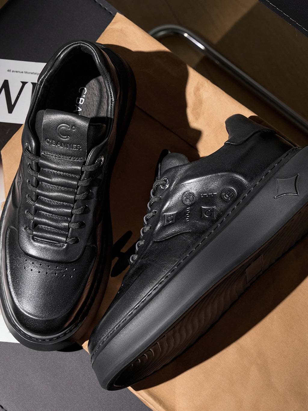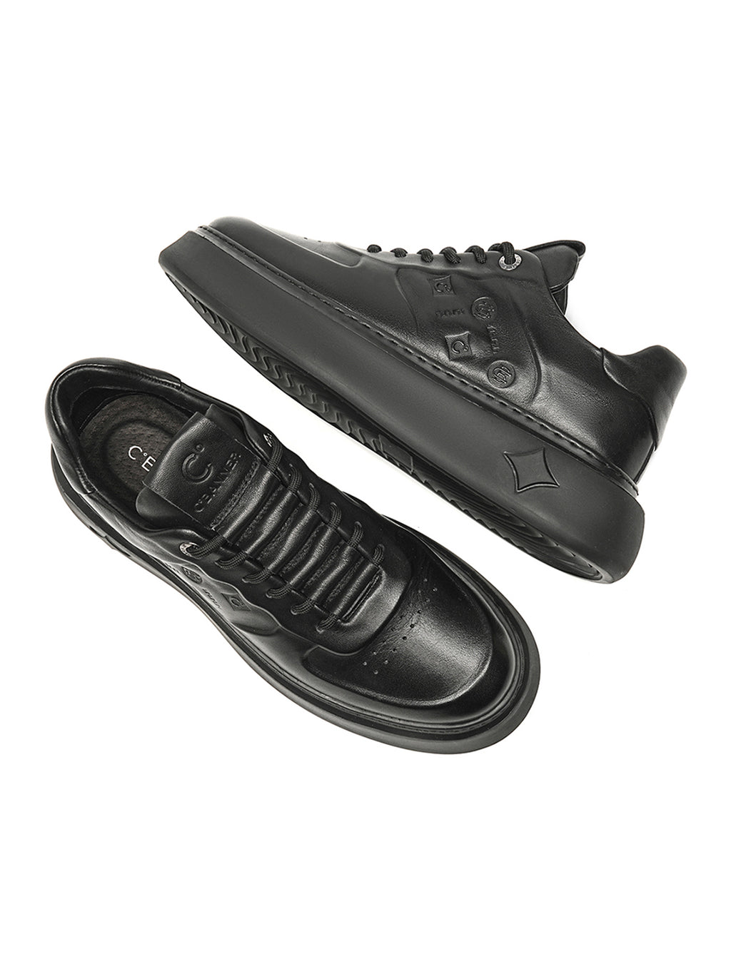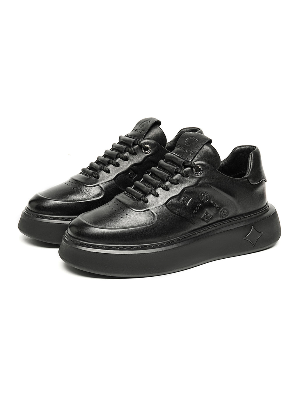 C.BANNER | Black Embossed Leather Platform Sneakers