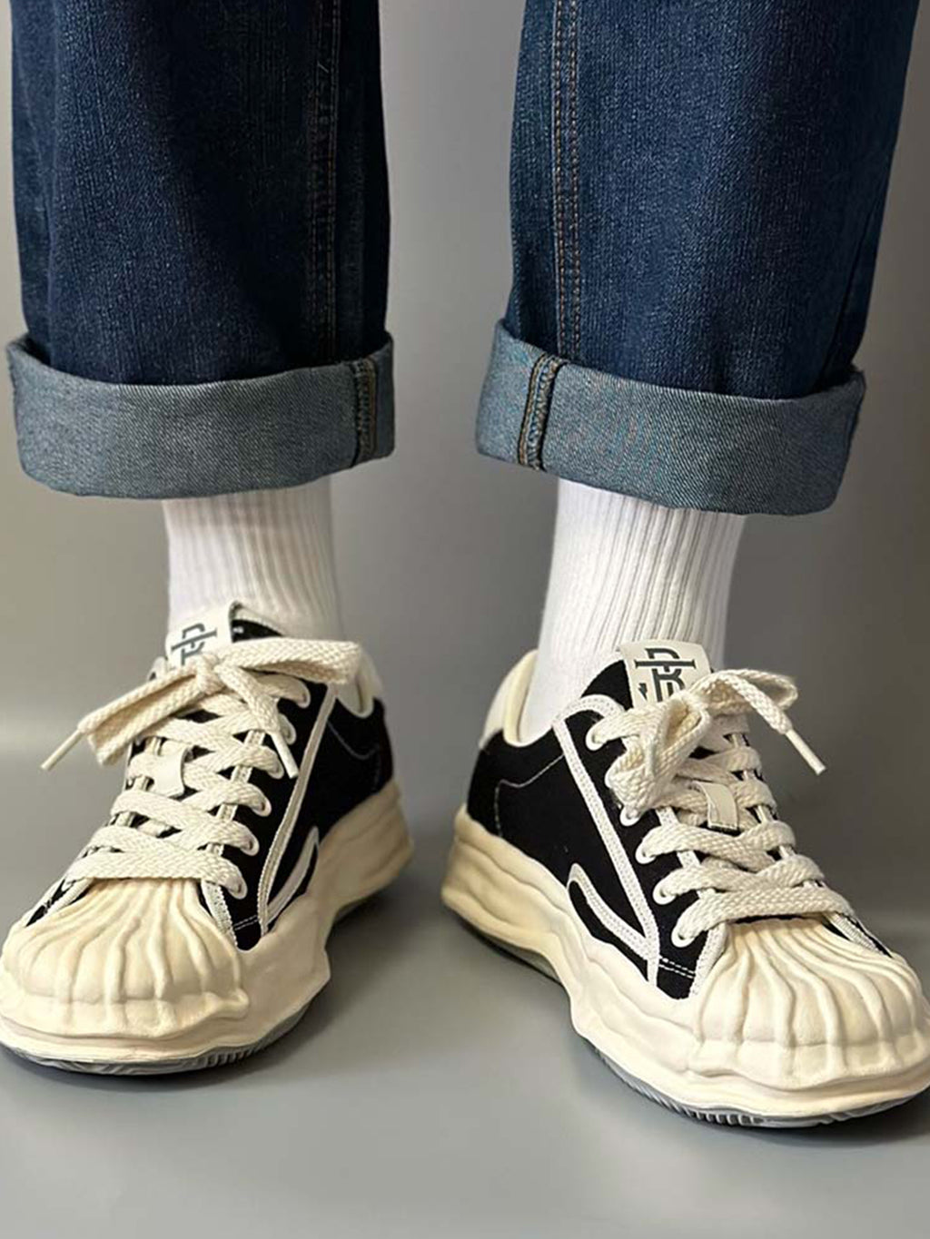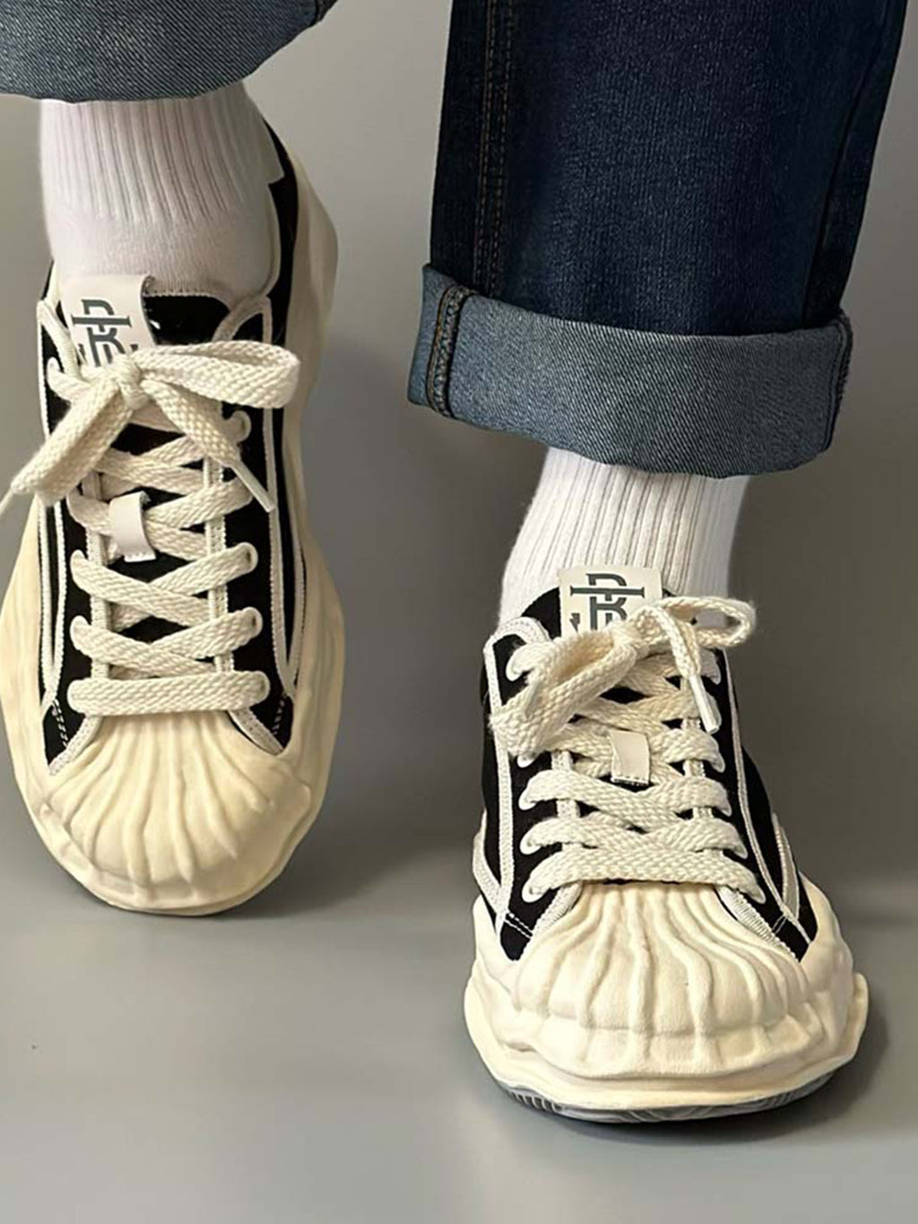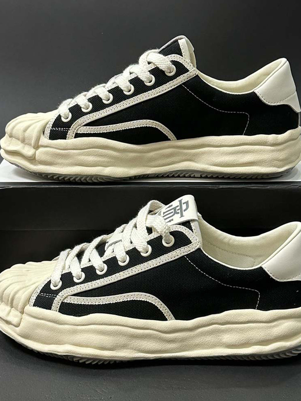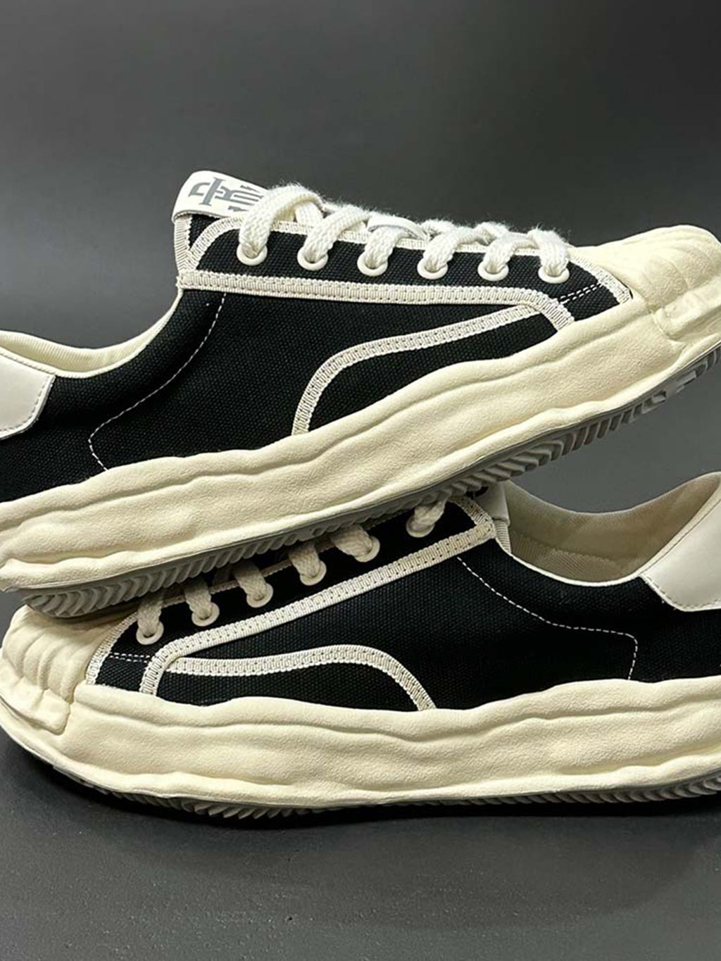 TRUMPPIPE | Black Canvas Platform Low-Top Sneakers Skip to content