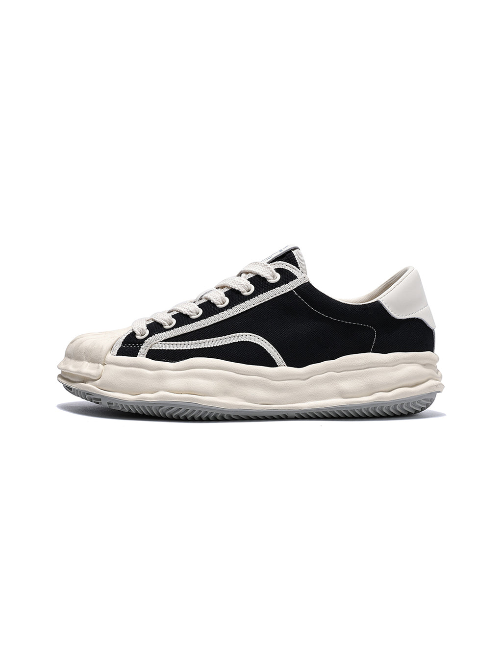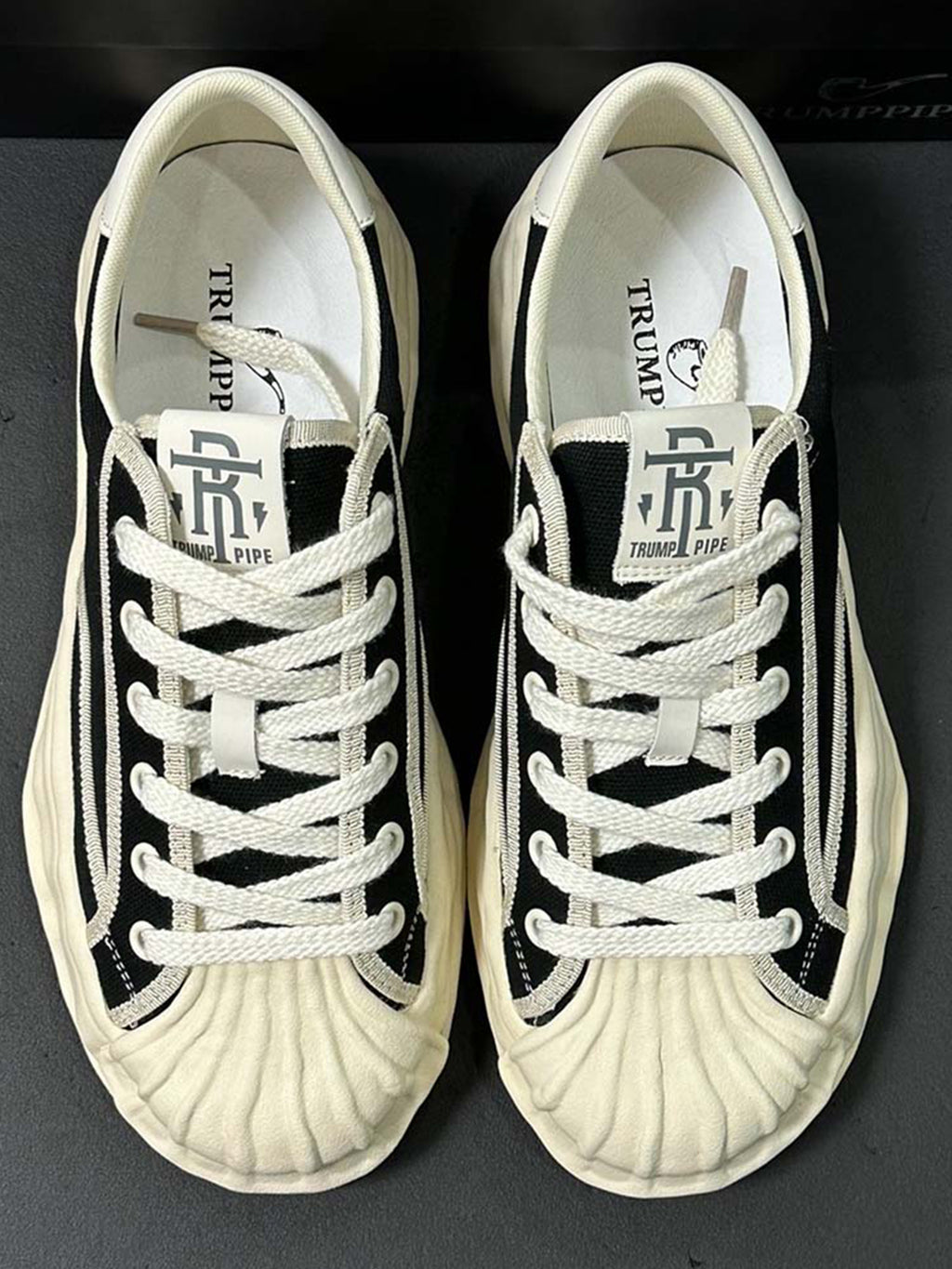 TRUMPPIPE | Black Canvas Platform Low-Top Sneakers